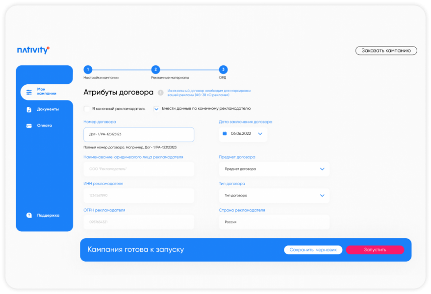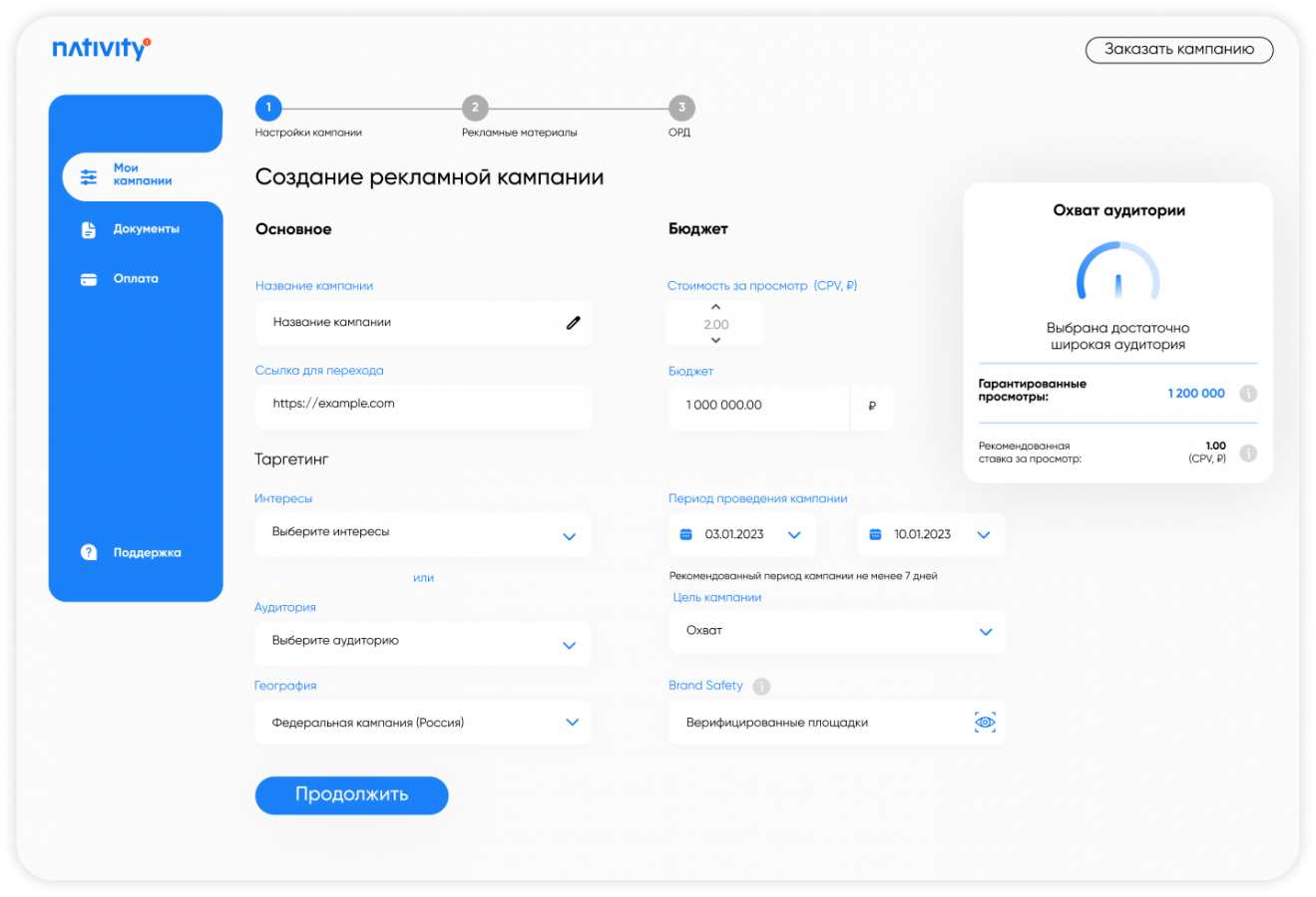 С 27 февраля 2023 рекламный кабинет на платформе Nativity доступен рекламодателям для самостоятельного использования после регистрации и прохождения верификации.