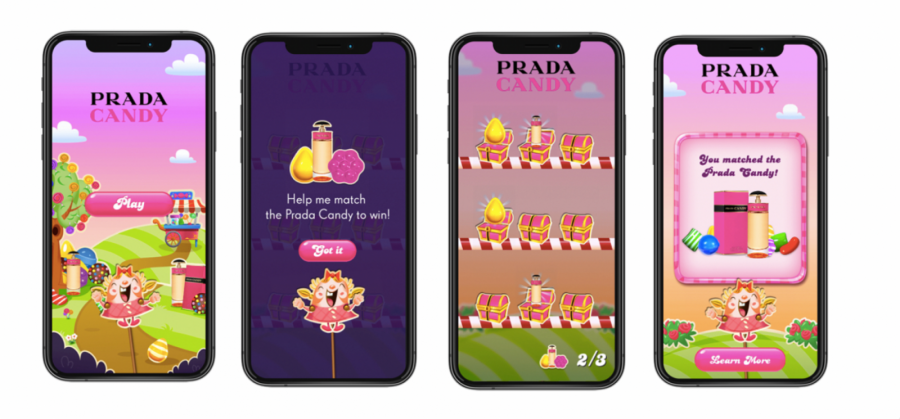 После того, как бренд Prada Beauty запустил плейбл в приложении для рекламы нового аромата Prada Candy, недельный прирост трафика по сравнению с предидущей неделей, составил 1,813%. Механика «три в ряд» представляет собой совмещение с помощью двух жестов, чтобы выстроить три или более сундуков с одинаковым наполнением.