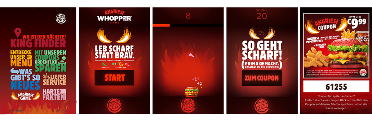 На западном рынке формат Playable Ads переживает всплеск популярности. При этом, в России плейблы пока только приобретают массовый охват. Одним из первых брендов, который начал экспериментировать с плейблами, стал Burger King, в своей игре Angriest Whopper. Механика игры заключается в том, что игроки пытаются собрать 20 халапеньо менее, чем за 20 сек. Победитель получает эксклюзивный купон на скидку в ресторане. В том же году Playable Ads стали популярны и в других вертикалях от FMCG до гостиничного бизнеса.