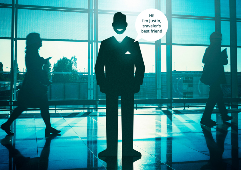 Лицом бренда стал выдуманный персонаж, ожившая вспомогательная навигационная пиктограмма по имени Justin Case. Justin наглядно показывает, как нужно применять каждый дорожный аксессуар на практике.
