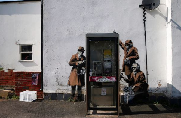 В 2014 году на стене дома недалеко от Центра правительственной связи в Лондоне появились три шпиона с подслушивающими устройствами. Картина была создана через несколько месяцев после того, как Эдвард Сноуден разоблачил методы и масштаб слежки спецслужб за жителями по всему миру. Дом, стена которого стала холстом, выставили на продажу за 210 тыс. фунтов.