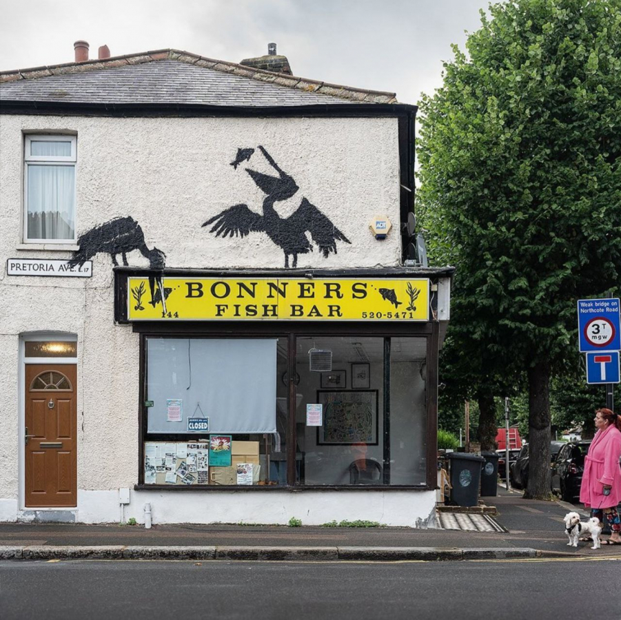 Над вывеской рыбного магазинчика в Walthamstow появились два черных пеликана. К общему мнению относительно пеликанов аудитория не пришла, а в Instagram* пошутили, что художник спас магазин от банкротства.