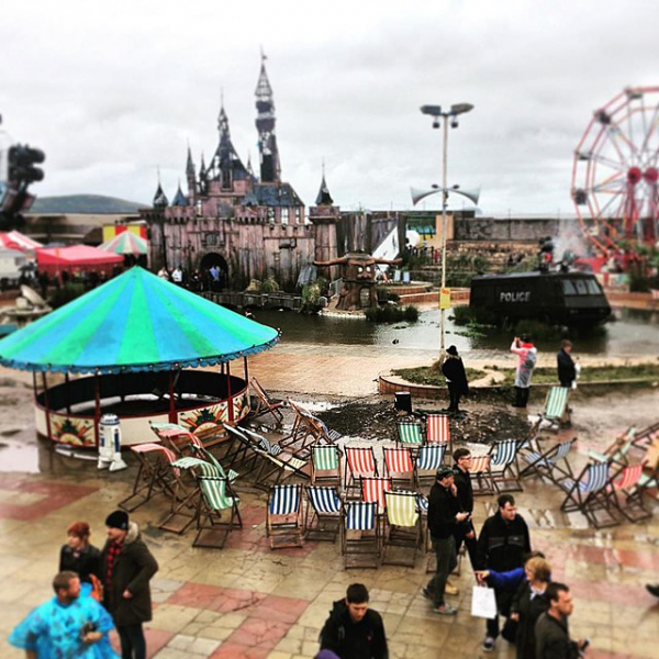 21 августа 2015 года Бэнкси создал в английском курортном городке Уэстон-сьюпер-Мэр временный мрачный парк развлечений Dismaland — с разбитым асфальтом, утопленным полицейским фургоном и расплющенной Русалочкой. Словом, представил пародию на Диснейленд. В нем были представлены работы 58 художников. Этот парк, как предполагается, высказывание Бэнкси касательно общества потребления. Сам художник описал её как «семейный тематический парк, непригодный для детей». 27 сентября того же года парк закрылся навсегда.