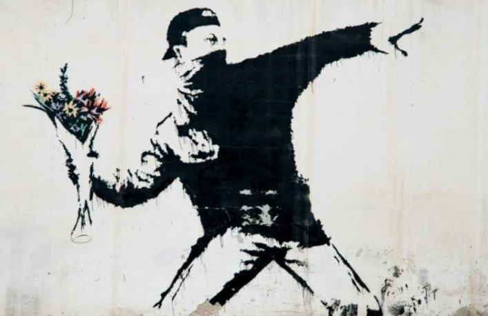 В 2005 году на стене в Вифлееме появилось изображение разгневанного молодого человека, который замахнулся и готов бросить вместо коктейля Молотова… букет цветов.