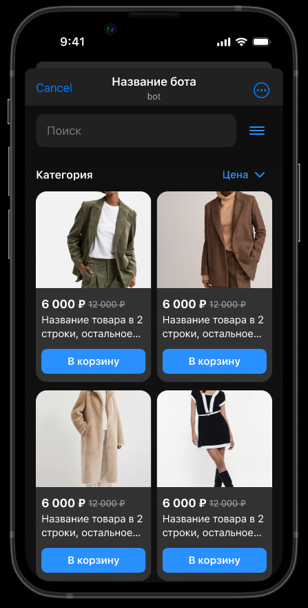 - Продажи и оформление заказов — через витрину товаров, корзину и встроенные платежи. Например, цветочный бизнес может перевести весь процесс продаж внутрь Telegram: клиент выбирает букет, оплачивает и указывает адрес доставки — все это без перехода на внешний сайт.