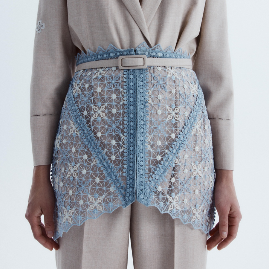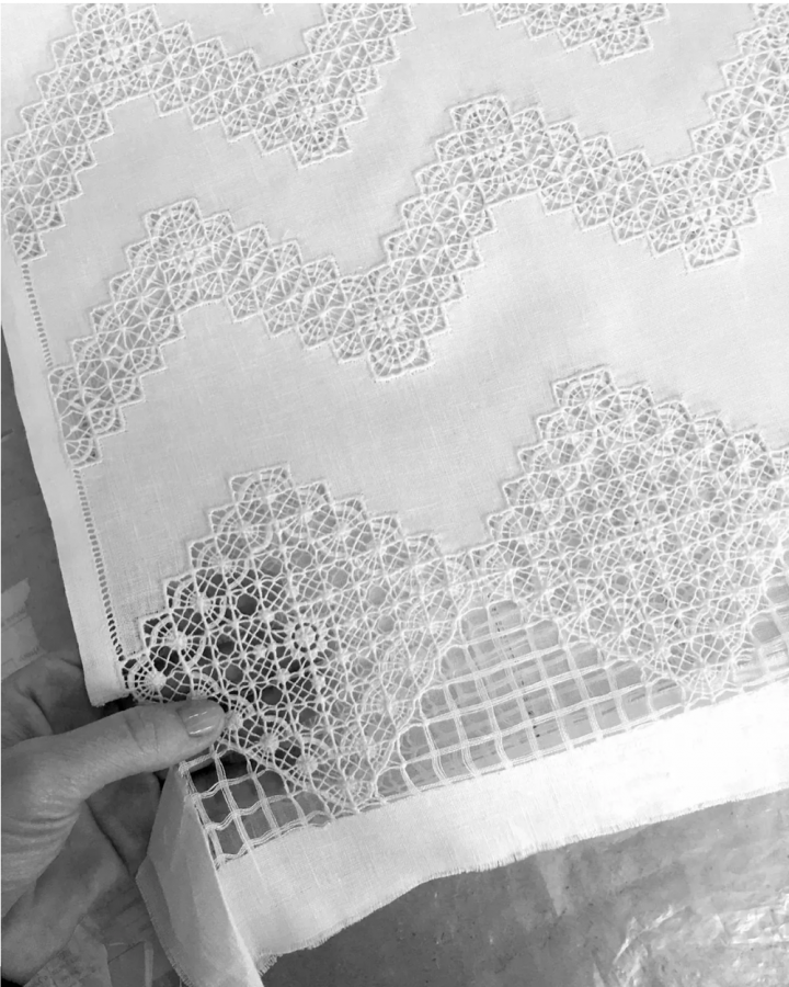 «Крестецкая строчка». Традиционная вышивка Новгородской области 1860-х годов. Бренд адаптировал технику под современный крой и фэшн-сегмент, сохранив подлинность ремесла.