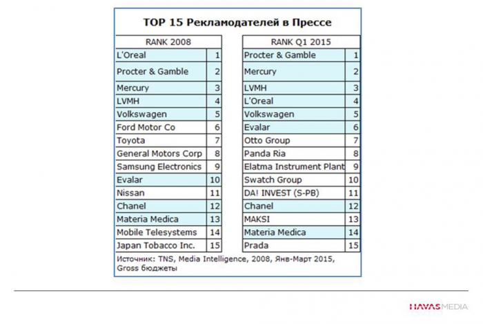 Если посмотреть на перемены в составе ТОП-15 рекламодателей, то наиболее яркими изменениями можно назвать: