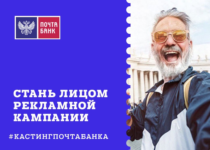 Для участия в кастинге достаточно просто опубликовать свое «состаренное» фото, добавив к нему хэштег #кастингпочтабанка, а также подписаться на страницу банка в одной из соцсетей. Главными критериями отбора фото станут яркость, динамичность и креативный подход. Авторы 10 лучших фото также получат видеокамеры Go Pro.