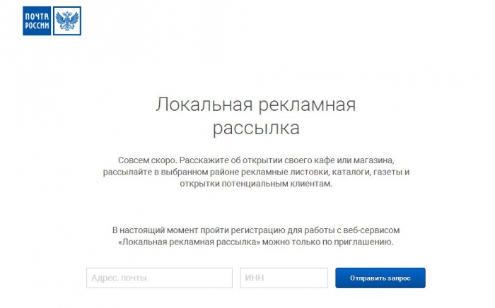 «Почта России» создала сервис «Локальная рекламная рассылка». С его помощью предприниматели могут рассылать рекламные листовки, каталоги, газеты и открытки потенциальным клиентам. Доставка будет проходить в выбранном районе, что позволит рассказать об открытии кафе или магазина. В настоящее время сайт geo.pochta.ru находится на стадии тестирования и доступен только по приглашениям.