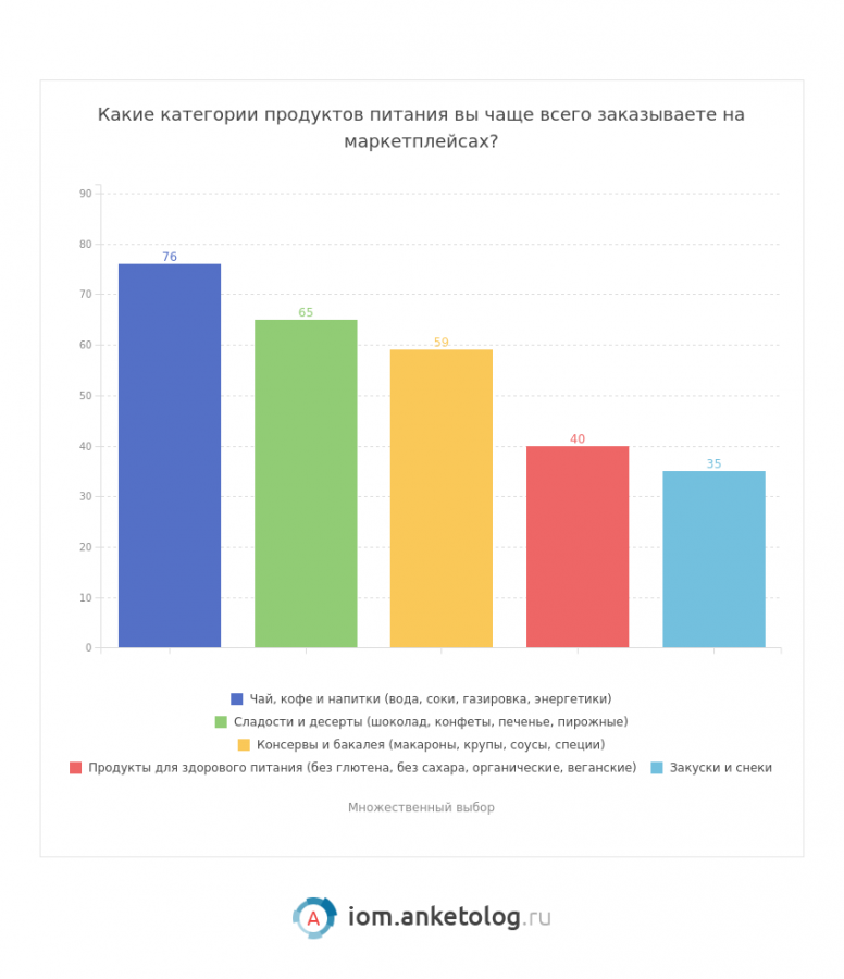 Маркетплейсы все активнее превращаются в полноценную площадку для покупки продуктов питания. Покупатели чаще выбирают их не только для заказа бытовых товаров, но и для продуктовой корзины, говорится в исследовании Anketolog.ru.