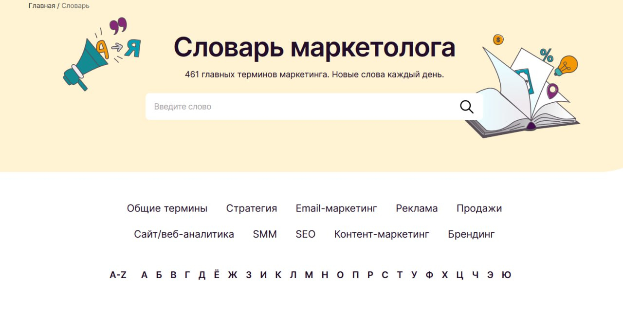 В словаре 10 разделов, в ближайшее время создатели планируют добавить ещё два — PR и мессенджер-маркетинг. Все статьи проверяют профессионалы в маркетинге: сотрудники Setters, «Комплето», Mailfit, iMedia, CRM-group, а также отдельные специалисты Ася Челован и Паша Молянов. Подробнее — в Telegram-канале Sostav.