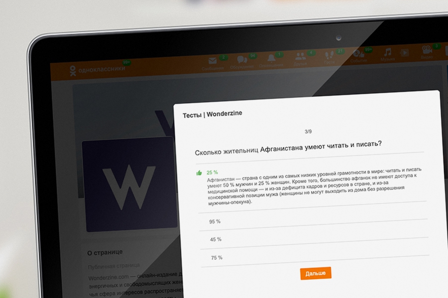 Крупнейшие СМИ, развивающие свои группы в ОК, предложат 8 марта пользователям принять участие в информационных и образовательных проектах. Например, рассказать о женщинах самых «неженских» профессий, пройти тест на знание фактов о положении женщин в обществе, из которого пользователи узнают, что до сих пор запрещено гражданкам Саудовской Аравии и сколько жительниц Афганистана умеют читать и писать. СМИ в ОК также расскажут о том, как женщины, больные раком, справляются с недугом и побеждают.