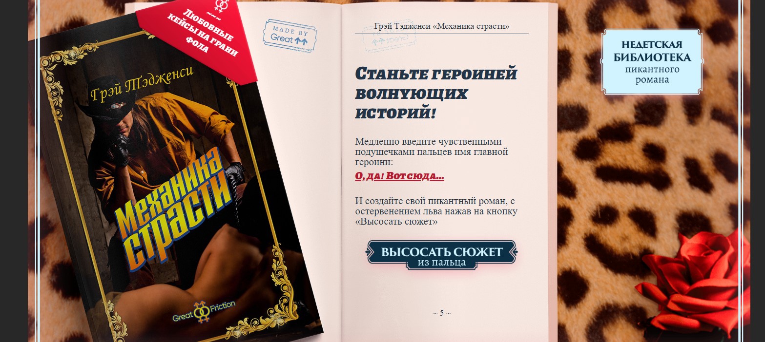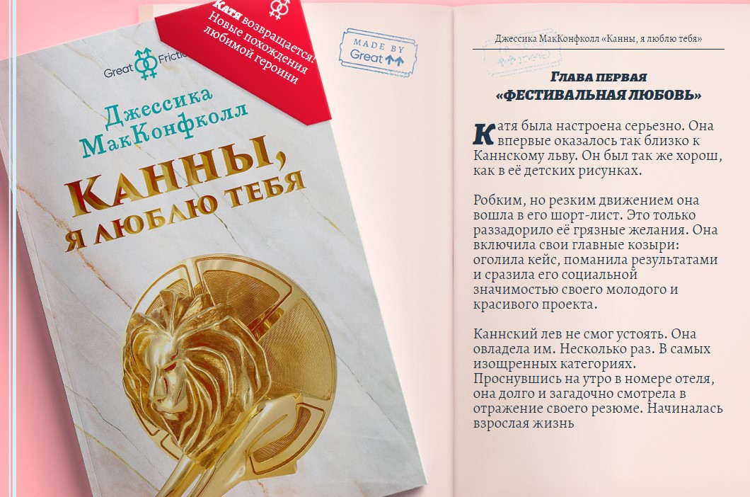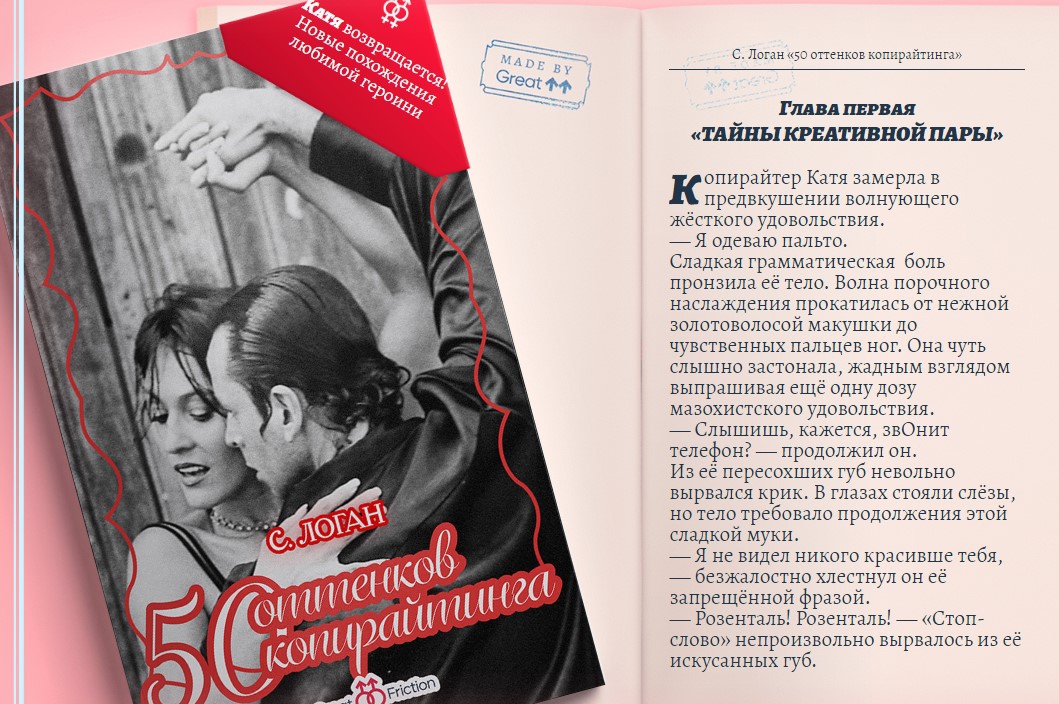 Новая диджитал-кампания агентства Great состоит из коллекции отрывков из любовных романов. Каждой девушке предлагается «медленно ввести чувственными подушечками пальцев свое имя», став тем самым главной героиней пикантной истории.