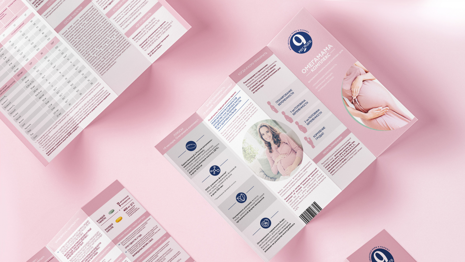 В портфеле клиента — поливитамины, моновитамины и микроэлементы, средства для борьбы с проблемами и недомоганиями во время беременности (например, средства от отеков, растяжек, токсикоза), а также сопутствующие средства. Дизайнеры усилили брендинг, сделав логотип в верхней части упаковки ярким и заметным. В основе дизайн-концепции появилось цветное фотоизображение женщины, для усиления эффекта спокойствия команда использовала дополнительные пастельные цвета.