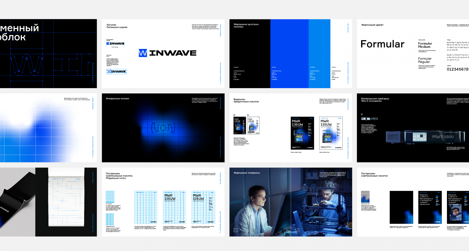 При создании айдентики стояла задача передать уверенность и смелость молодого бренда, но при этом выглядеть солидно и надежно. Идея фирменной графики появилась после внимательного взгляда на экран микроволнового прибора и построена на сочетании сетки и градиента. Сетка — отражение структурности и инженерного мышления бренда, а градиент — метафора динамичного развития компании, изобретательности и гибкости команды при работе с клиентами.