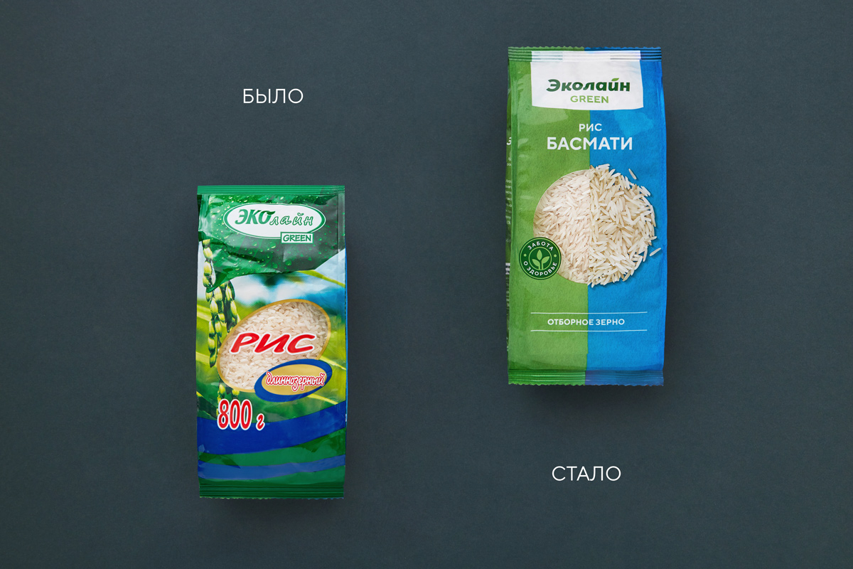 Новое позиционирование — «Семья собирается по зернышку». «Эколайн» — бренд, который заботится о продукте и потребителе, помогая собрать всю семью за столом, создавая традиции и уют. Стилеобразующим элементом айдентики выступил листок, продолжая развивать тему натуральности, отраженную в нейме.