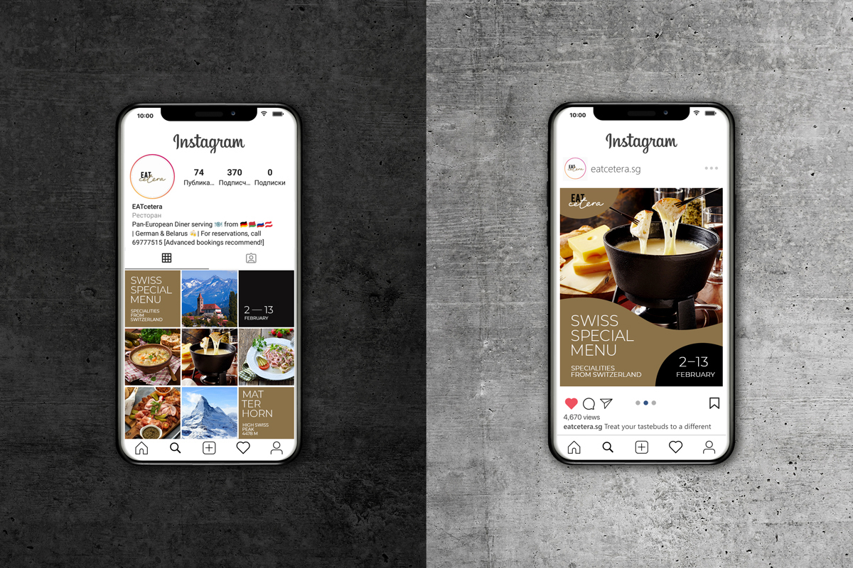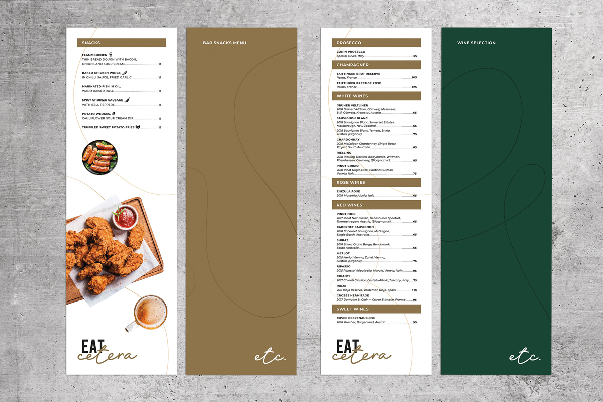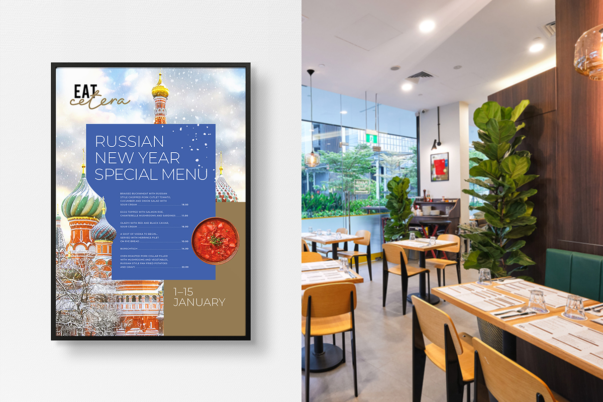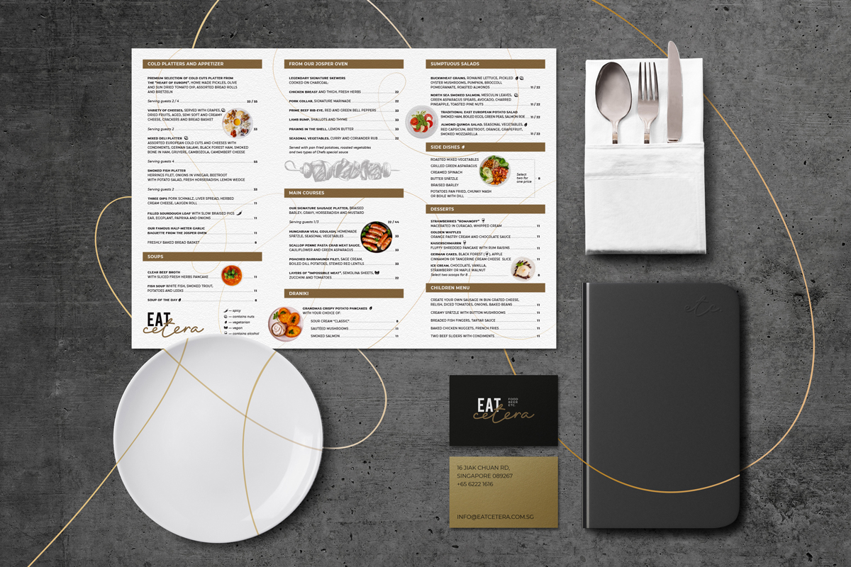 Расположение заведения (тихие районы города) и меню, включающее сеты и блюда для больших компаний, стали основой идеи — сделать пространство местом для дружеских встреч. Фантазийное название Eat Cetera обыграло устойчивое выражение «Et cetera», или etc. (с лат. «И так далее»", «И тому подобное»).