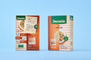 Насыщенные цвета основной линейки «Эколайн» помогают потребителю проще найти нужный продукт на полке. Клетчатый паттерн отсылает к классическому узору на домашней скатерти. А фудзона демонстрирует продукт как ингредиент и как готовое блюдо, подчеркивая быстроту приготовления.