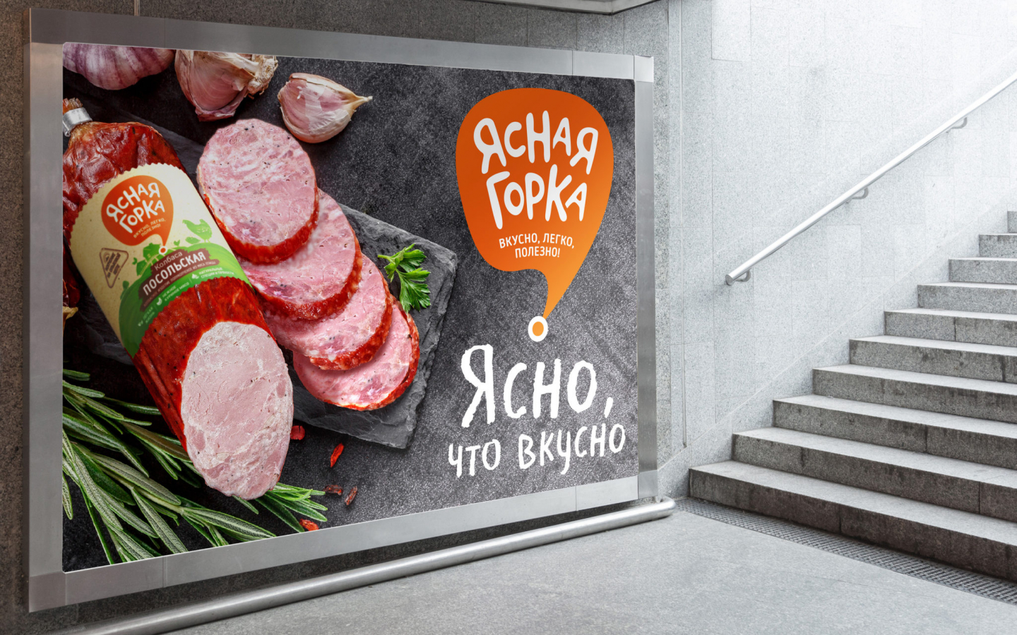 Понимая, что придется соперничать и с местными производителями, к которым у покупателей априори больше доверия из-за локальности брендов, дизайн должен был вызвать лояльность и желание попробовать новый продукт из мяса птицы. Было выбрано название «Ясная горка» — позитивное и яркое, создающее ощущение «своего» продукта.