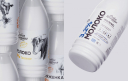 Композиция насыщена светом и воздухом, чтобы передать освежающий эффект средств по уходу за кожей. Типографика развивает историю с наукой — она минималистична и технологична.