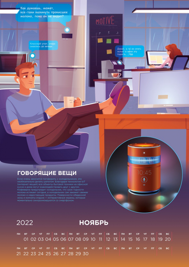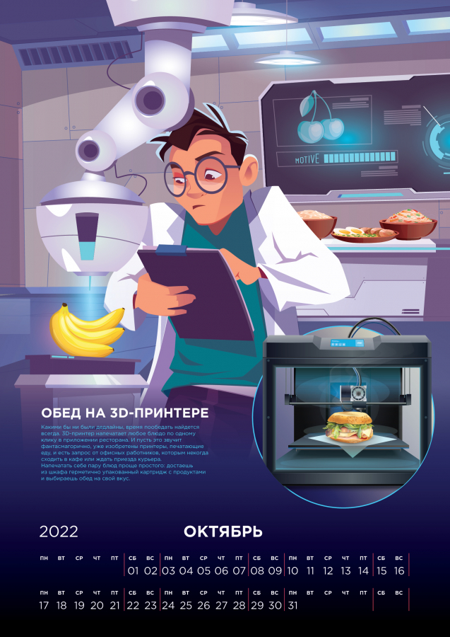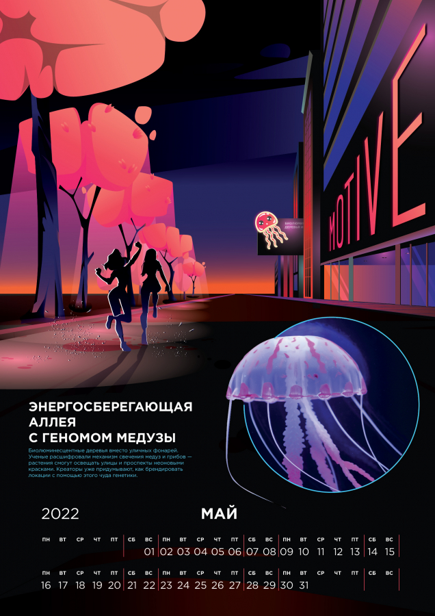 Команда агентства представила креативный science-art календарь на 2022 год — получился футуристичный прогноз, какой будет реклама через N-лет. На принте есть дроны-курьеры, говорящие вещи, экопаспорта, медузы-лампочки, 3D-обеды, базы дипфейков для продакшенов, виртуальные альтер-эго, сверх персонализированная реклама, голограммы и многое другое.