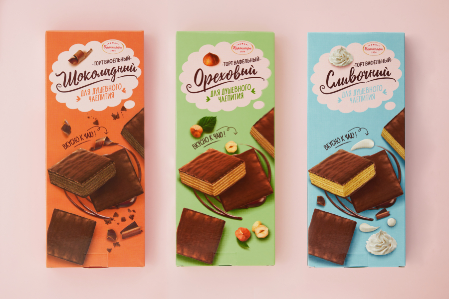 Команда клиента решила отказаться от фантазийного названия тортов в пользу более классического, и в связи с этим появилась необходимость провести редизайн упаковки, поскольку прошлая айдентика была завязана именно на нейминге.