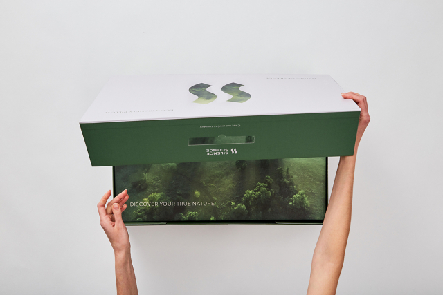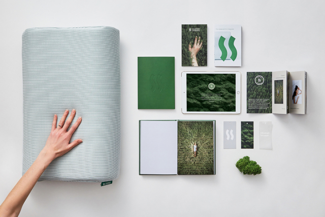 Silence Science переводится с английского буквально как «наука тишины». Текстово-графический логотип отсылает к натуральности и гармонии. Волнообразные линии, созданные на основе формы двух заглавных букв нейма, доносят адаптивность подушки, способность подстраиваться под естественные изгибы тела. Фирменный стиль — это сдержанный зелёный и нежный бежевый цвета, а также природные текстуры и пейзажи.