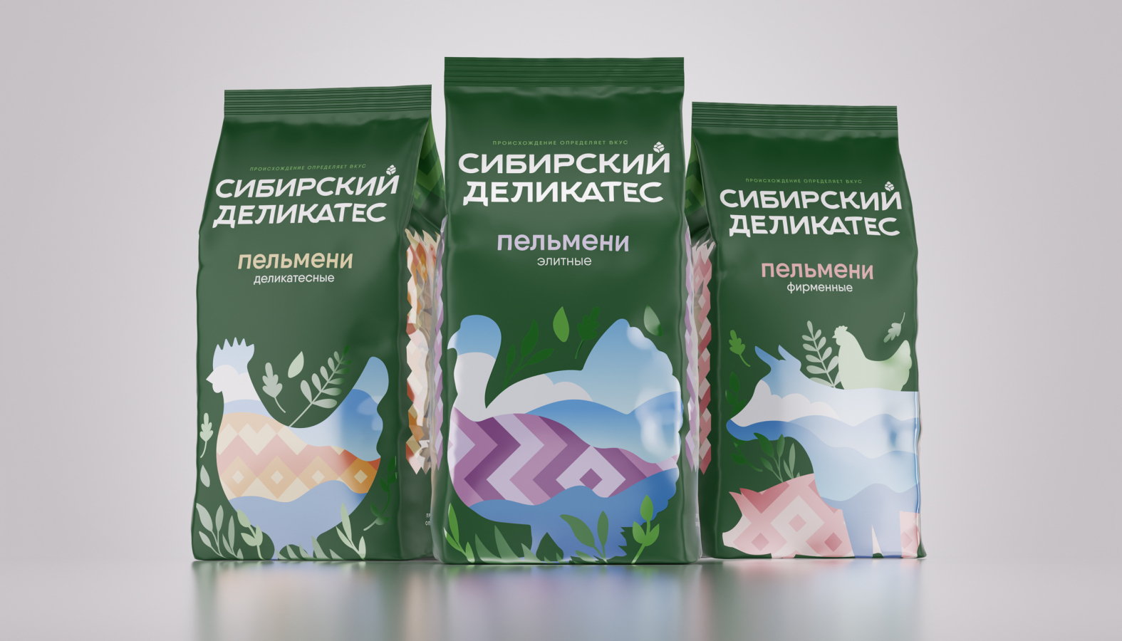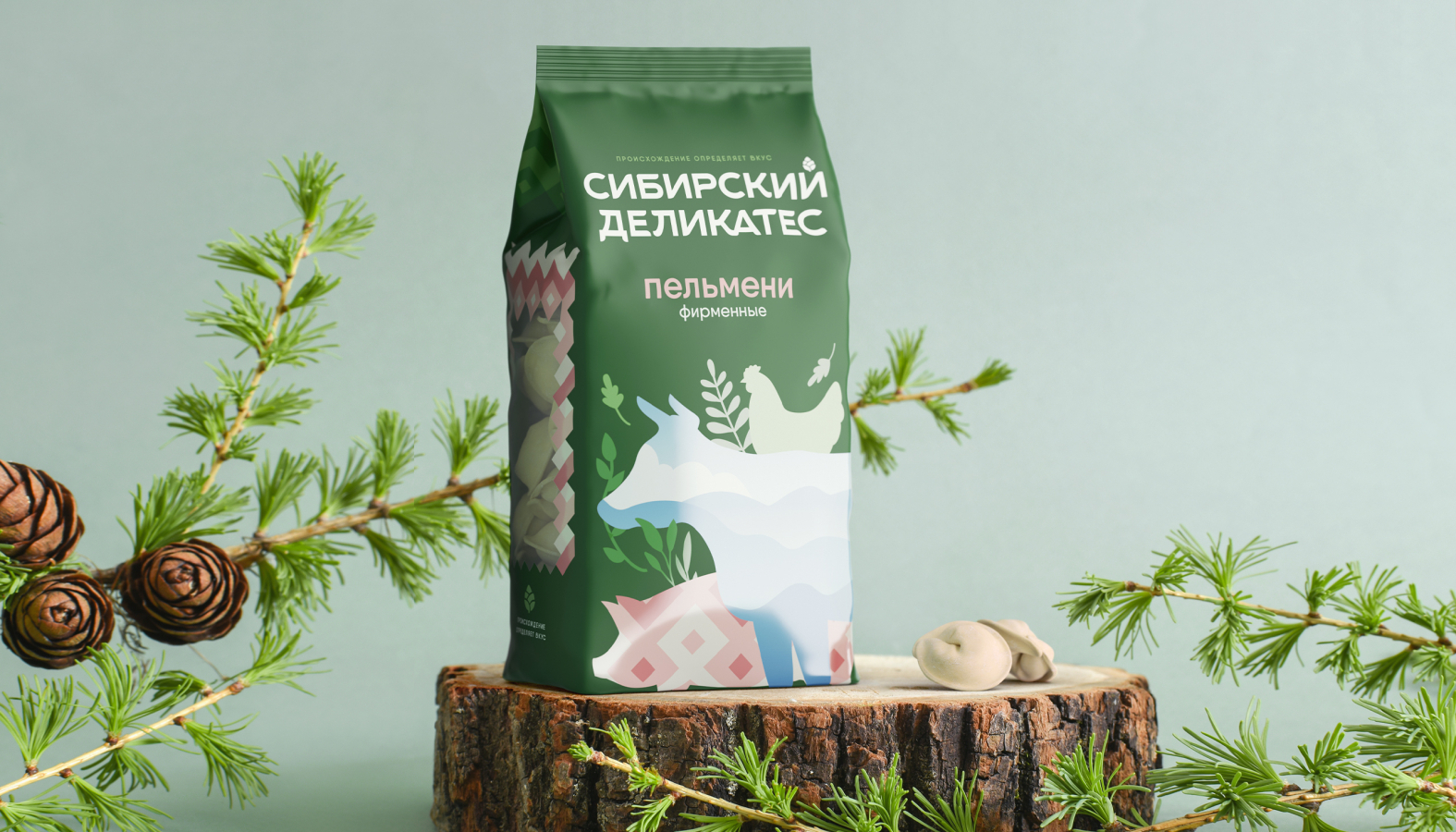 В концепцию дизайна упаковки легла не только натуральность продукции, но и аутентичность сибирских рецептов. Изучив конкурентов, агентство остановилось на темно-зеленом цвете — самом природном из всех возможных и тесно ассоциирующимся с Сибирью. Это нетипичный цвет для сегмента пельменей. Подробнее на Sostav.