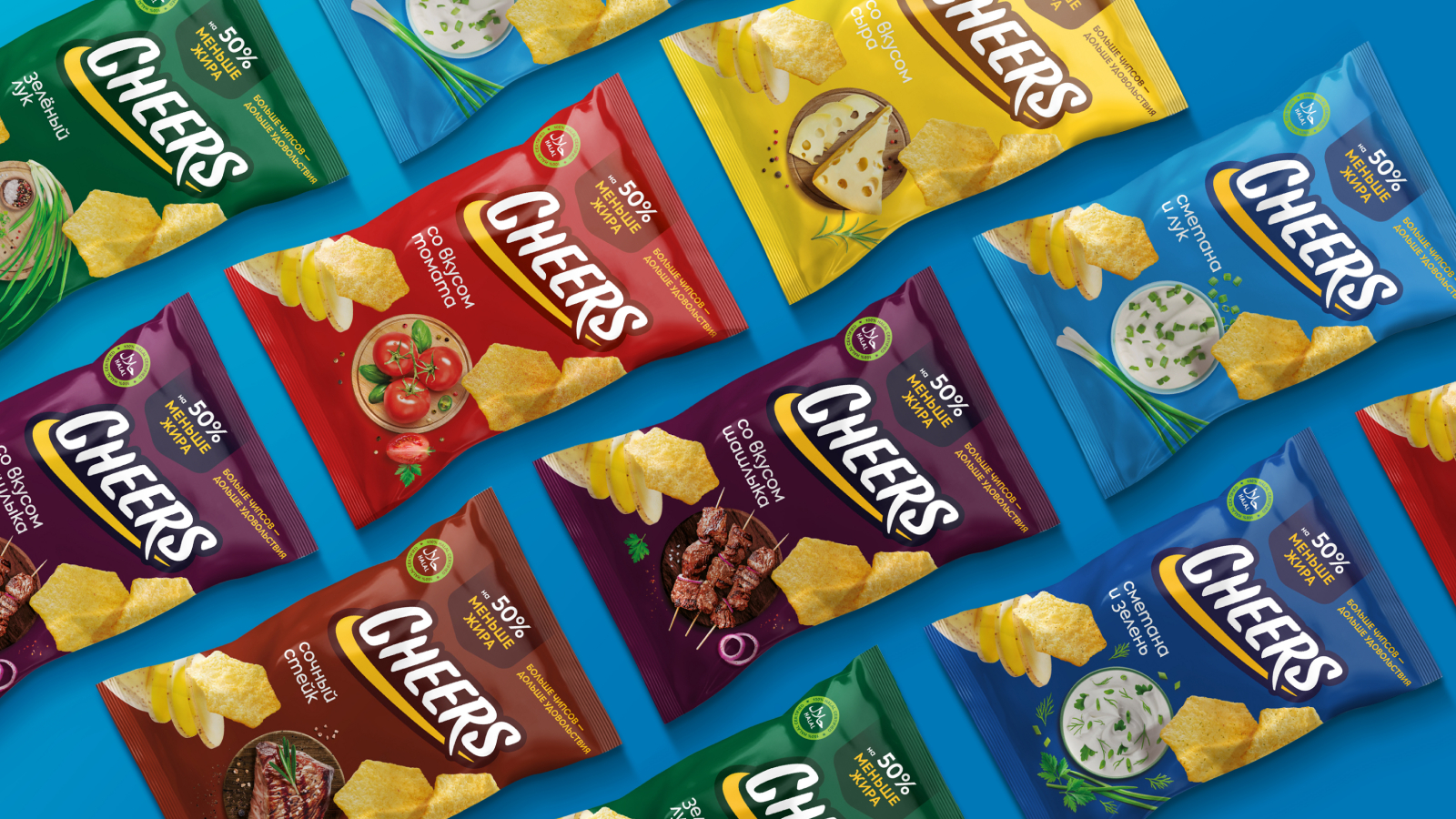 Узбекские чипсы Cheers видоизменили логотип и преобрели более мягкую типографику