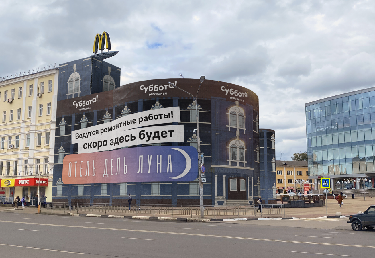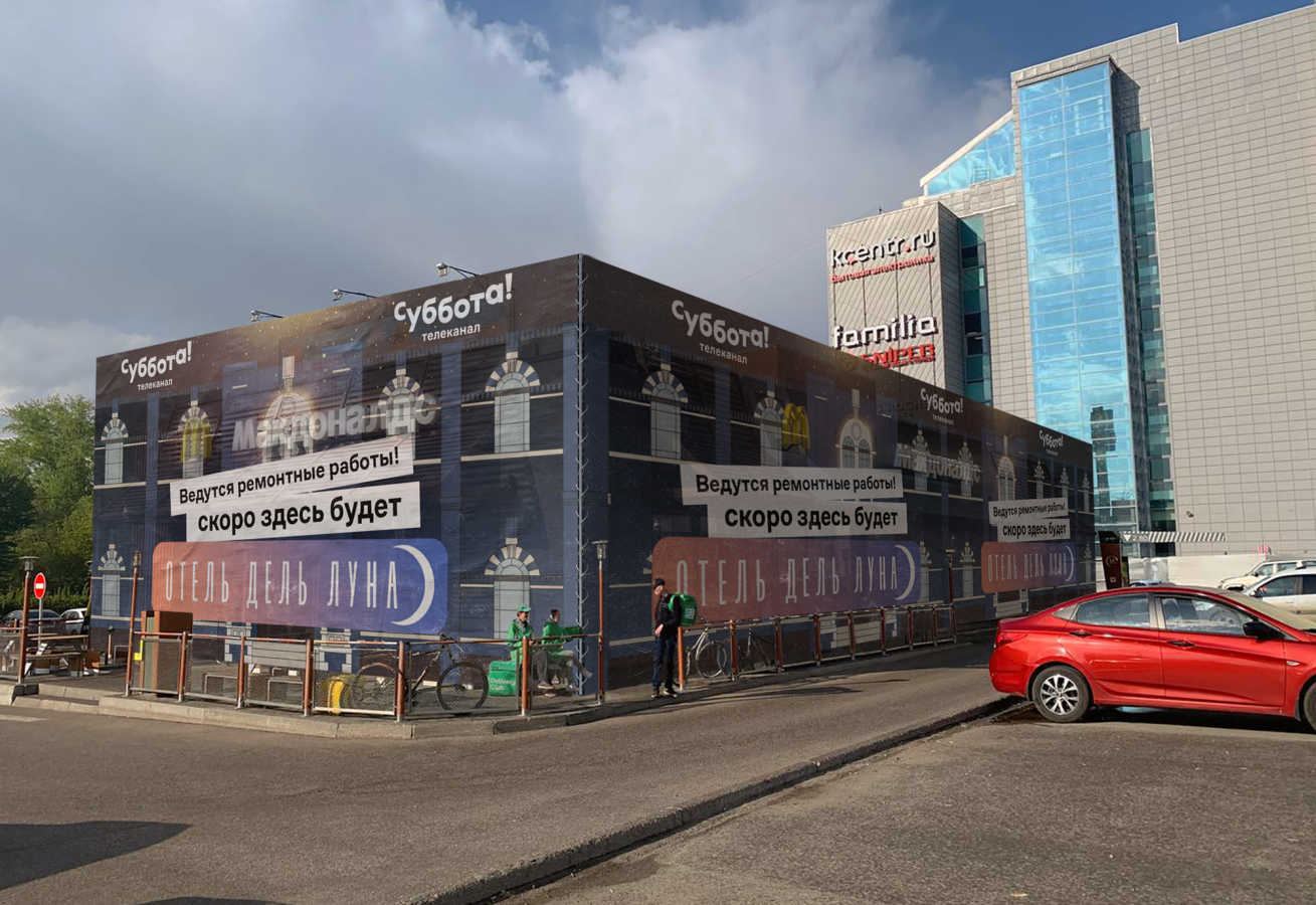Телеканал «Суббота!» предложил интересную развязку в истории с ресторанами бывшей сети «Макдоналдс» — команда представила концепт фальшфасада с рекламой корейского сериала «Отель дель Луна». Подробнее на Sostav.