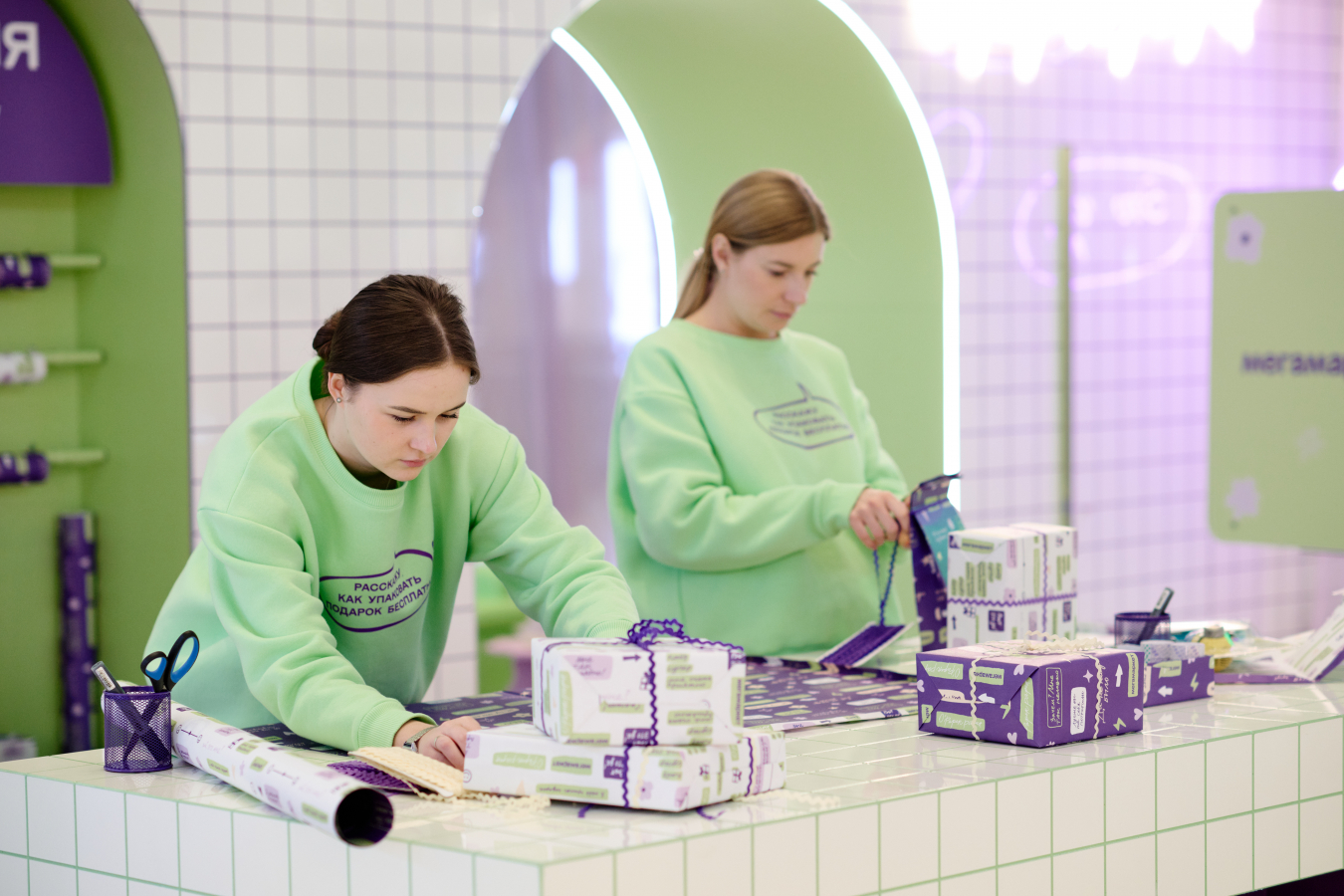 В «Авиапарке» «Мегамаркет» бесплатно упаковывал подарки