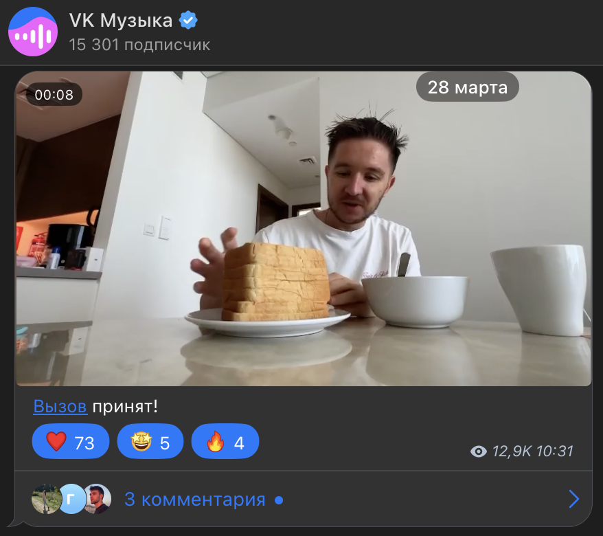 В этом году группа «Хлеб» отпраздновала 10-летний юбилей. Фронтмен группы Денис Кукояка в своем блоге рассказал, что огромное изваяние в виде тостов хлеба стало бы отличным подарком к этой круглой дате. «VK Музыка» увидела влог и приняла вызов. В ночь на 1 апреля на территории московского арт-центра «Хлебозавод» появилась масштабная инсталляция в виде тостов хлеба, сложенных друг на друга, фотографии которой быстро разлетелись в соцсетях. Подробнее на Sostav.