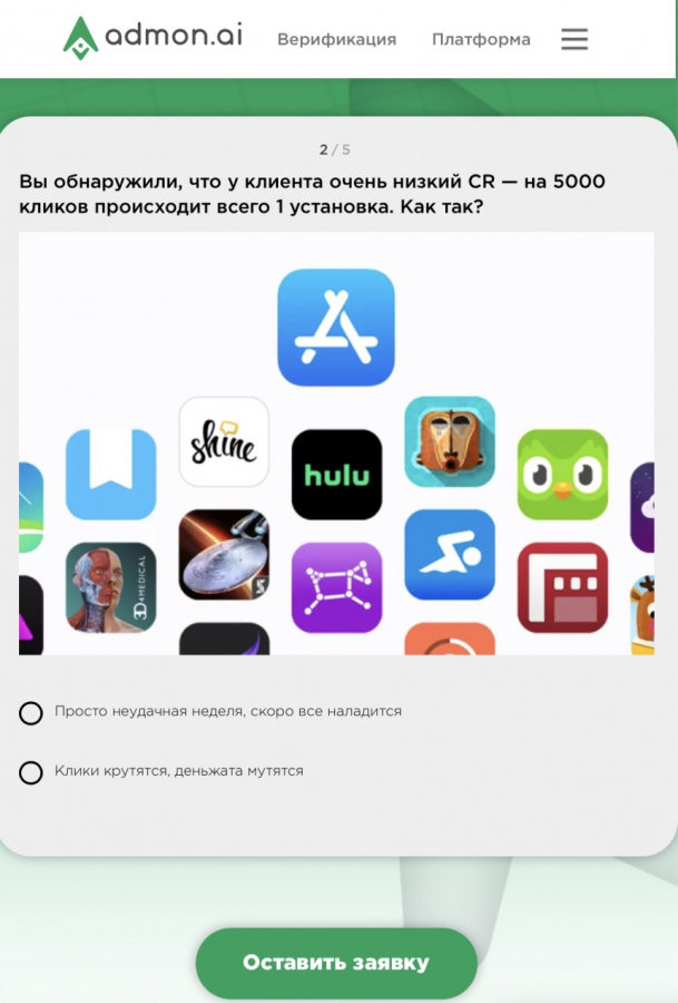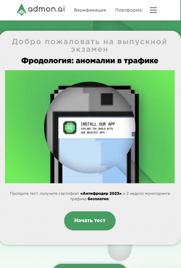 Admon предложил всем желающим пройти экзамен по фродологии за гарантированный бонус от агентства. Посетителям страницы предложили тест из пяти кейс-заданий на обнаружение мошеннических эпизодов и их причин. Несмотря на абсурдность вопросов, авторам, по их словам, не раз пришлось столкнуться с подобными аномалиями в трафике. Пройти экзамен можно по ссылке.