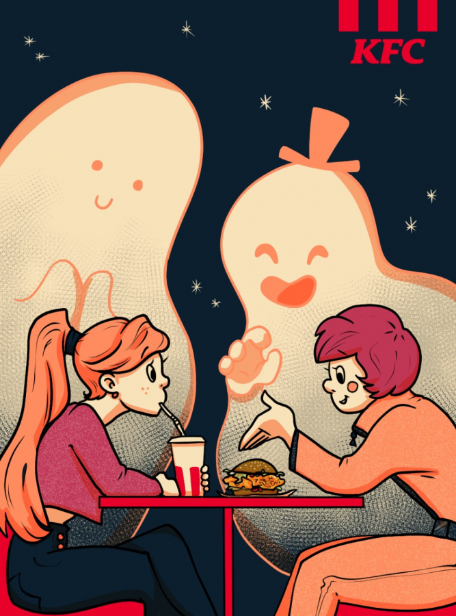 Сеть KFC и агентство Nectarin представили серию стильных иллюстраций с культовыми хоррор-персонажами. Кроме того, креаторы разработали тематический конкурс: пользователям нужно было описать, в какого монстра они превращаются, когда они очень хотят блюдо от KFC.