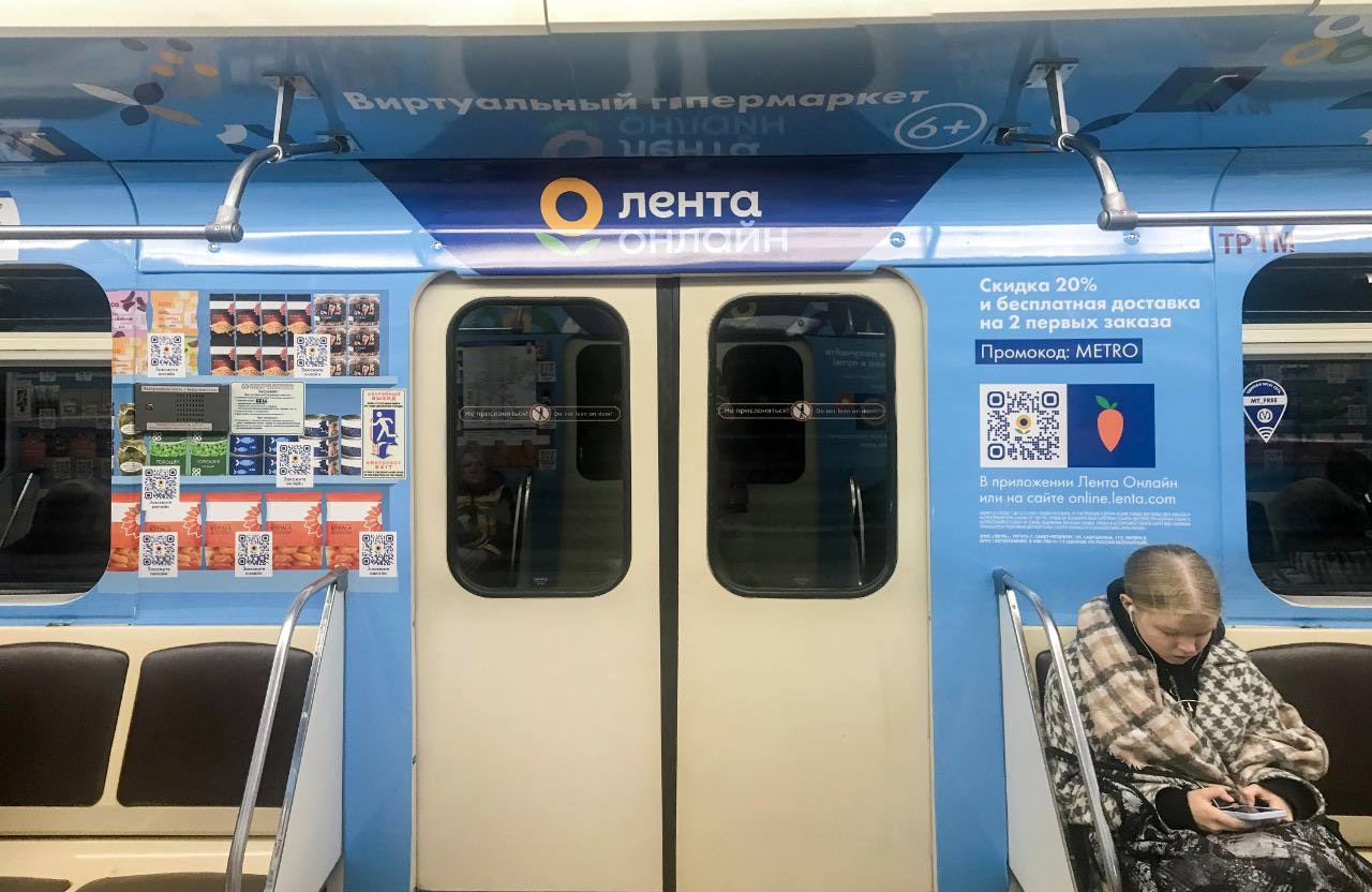 Сервис доставки «Лента Онлайн» запустил кампанию «Виртуальный гипермаркет». В метро Санкт-Петербурга и Нижнего Новгорода начали курсировать брендированные поезда, пассажиры которых могут отсканировать QR-код и собрать заказ.