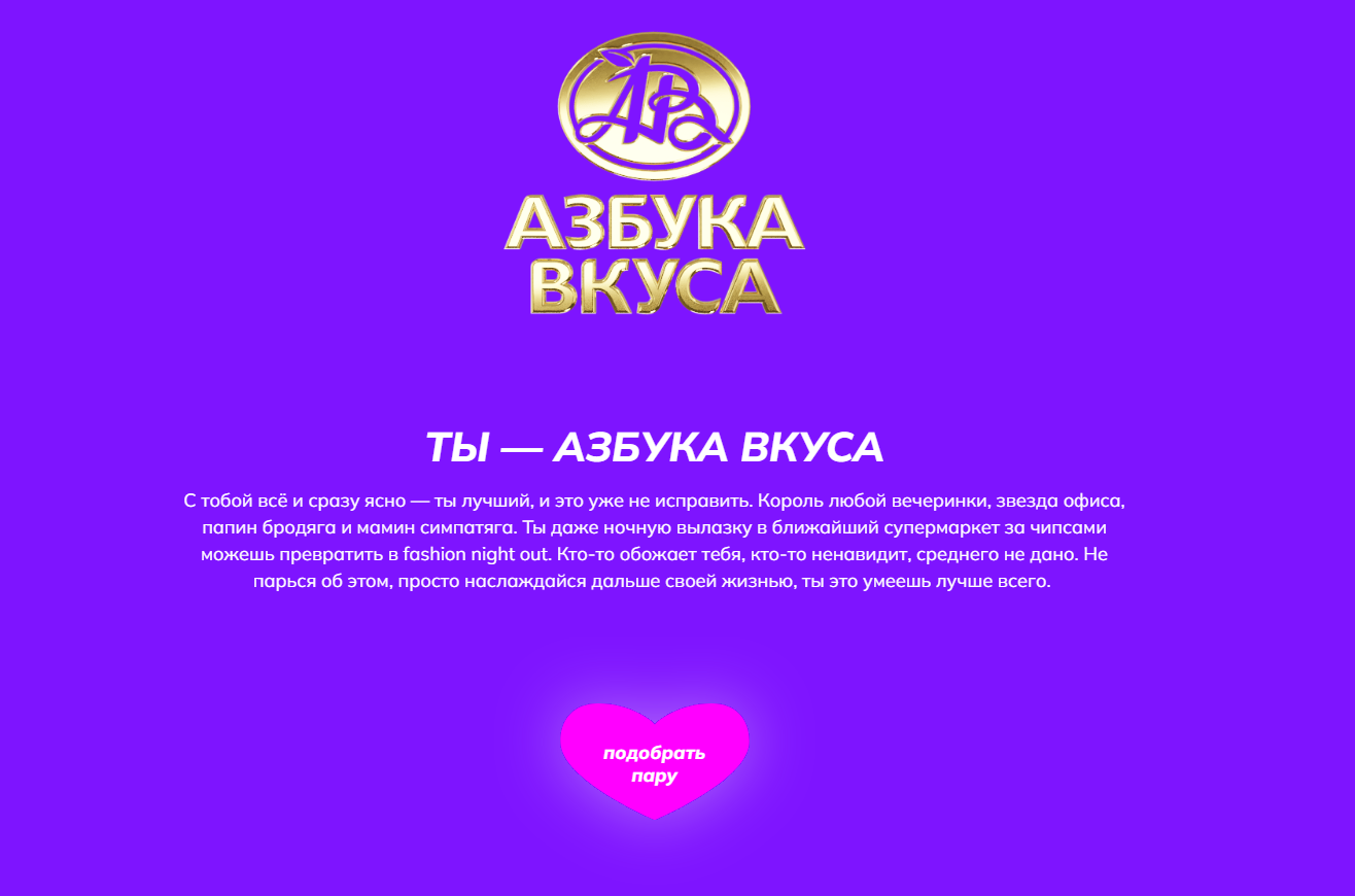 Креативное агентство «Соль» и диджитал-студия LoftWeb выпустили обновление бренд-гороскопа в формате «локал эдишн». Теперь среди брендов-участников только российские компании. Узнать, с кем из отечественных производителей вы родились под одной звездой, и найти агентство в пару можно на сайте активации.