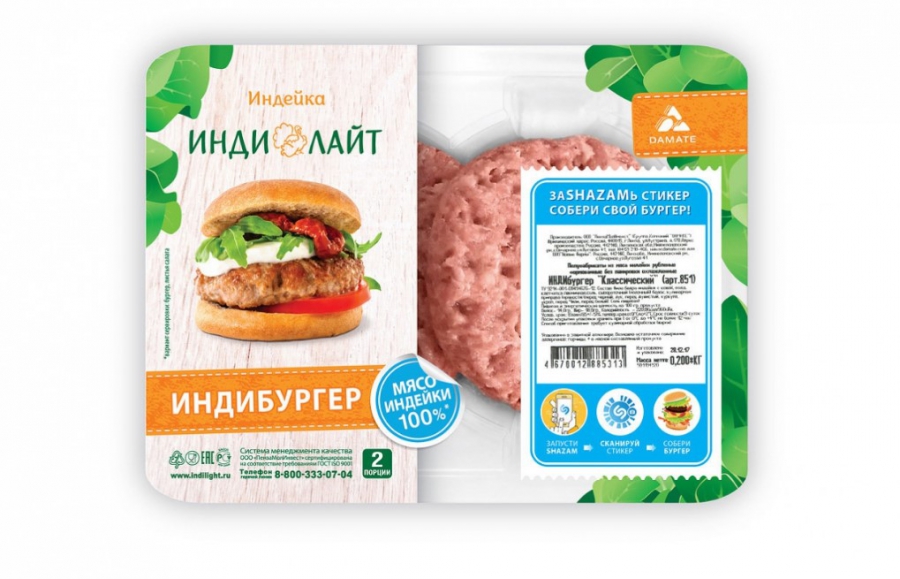 Для продвижения котлет для бургеров компания «Индилайт» применила технологию Shazam Visual Recognition.