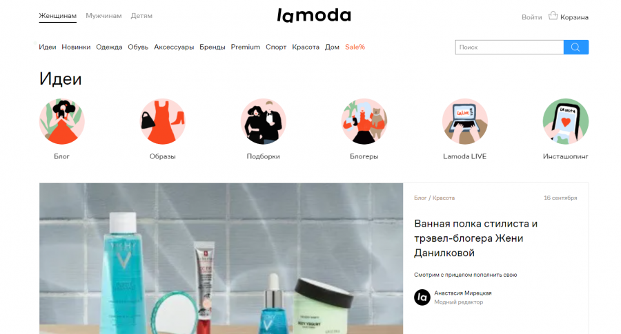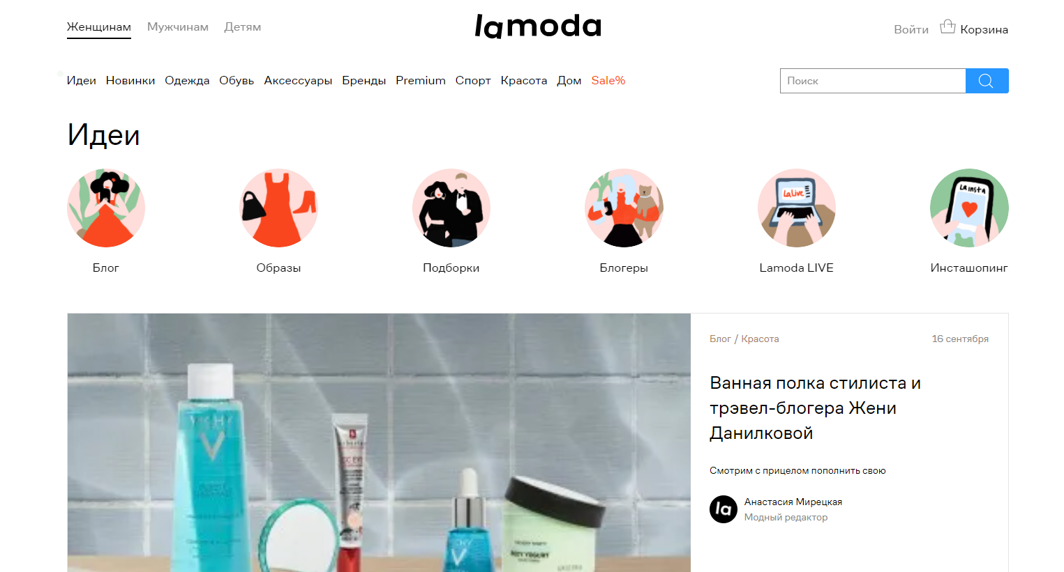 Медиапроект включает блог Lamoda с контентом о моде и стиле, образы от стилистов, подборки трендовых новинок, Lamoda LIVE для любителей видеошопинга, где собраны выпуски модного шоу с Идой Галич и эфиров со стилистами «Lamoda на диване». В его создании участвуют редакторы, авторы, стилисты, модные блогеры и эксперты. Подробнее на Sostav.