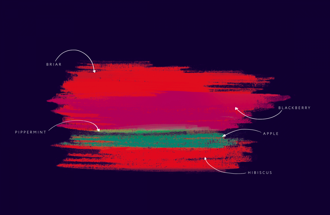 Иллюстрации интуитивно объясняют потребителю, какой чай лежит в основе каждого напитка и какие травы, ягоды и фрукты и в каких пропорциях дополняют его вкус. Выбранные цветовые схемы позволяют издалека дифференцировать чёрный и зелёный чай.