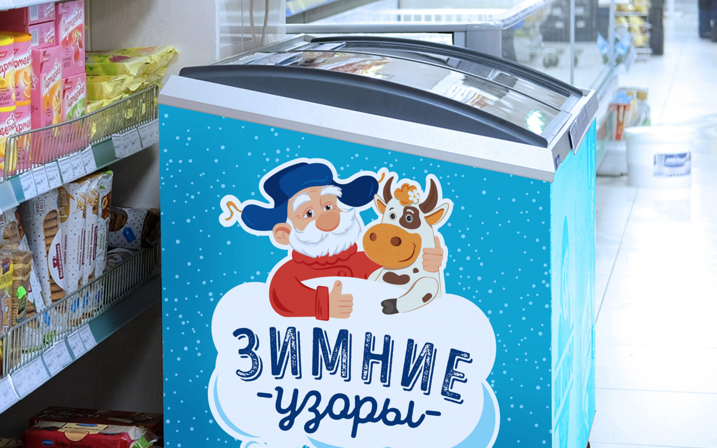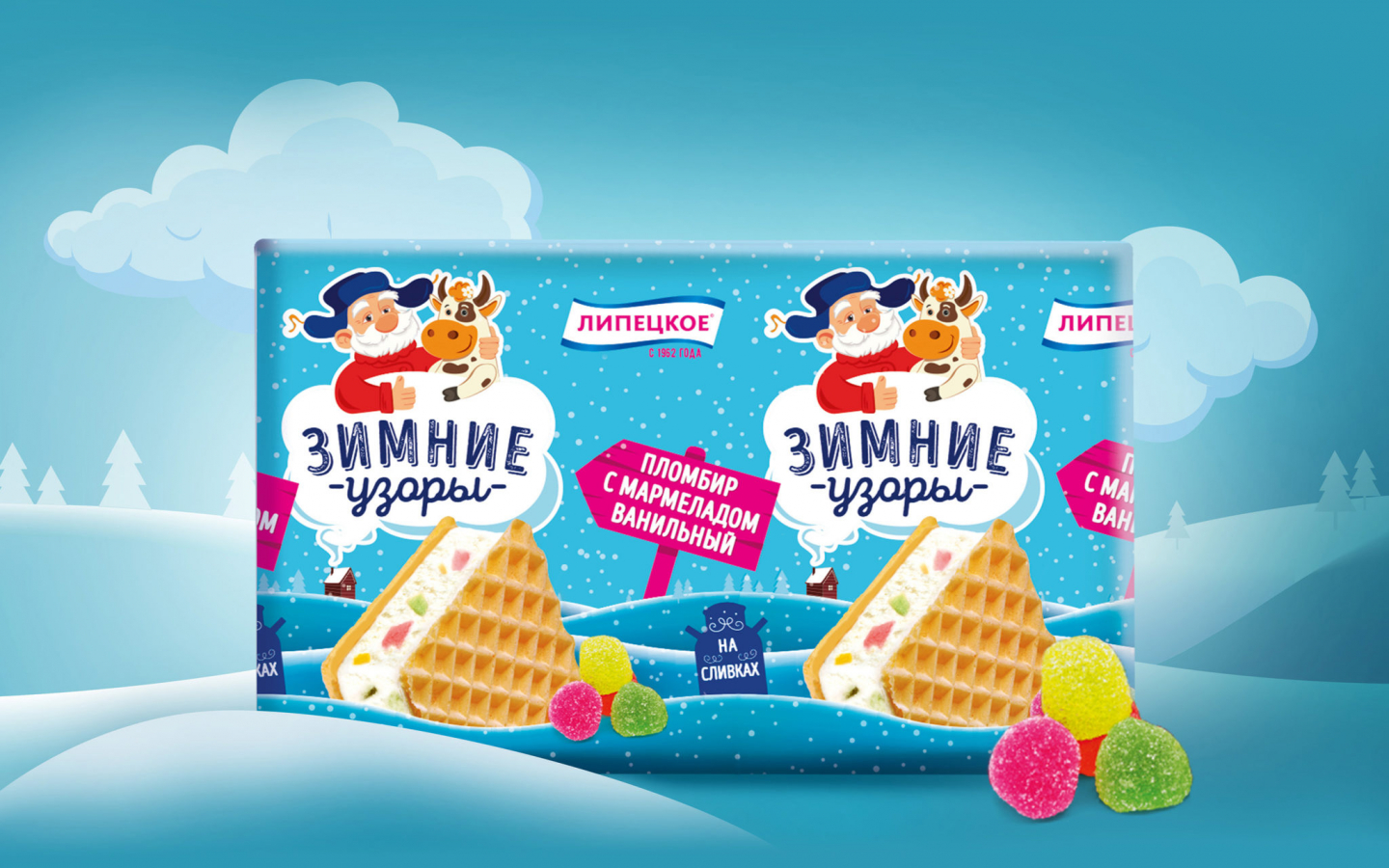 Дизайн стал более эмоциональным. Вместо деда Мороза, ассоциирующегося с Новым годом, появились два новых персонажа, два друга — дедушка с коровкой. Ведь пик продаж мороженого приходится на летний сезон.