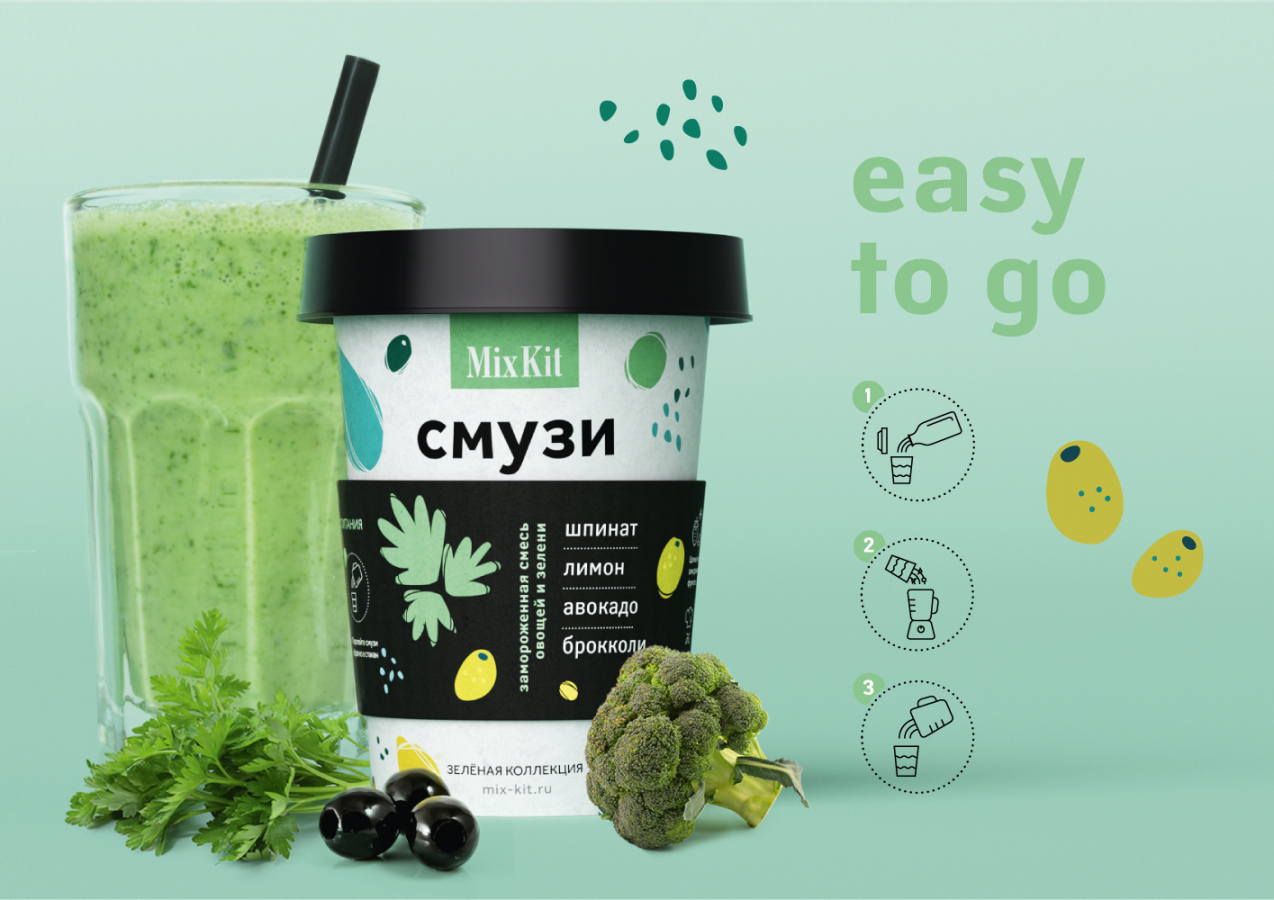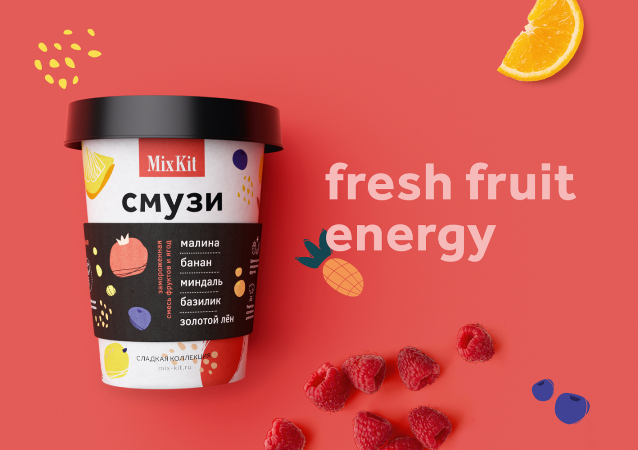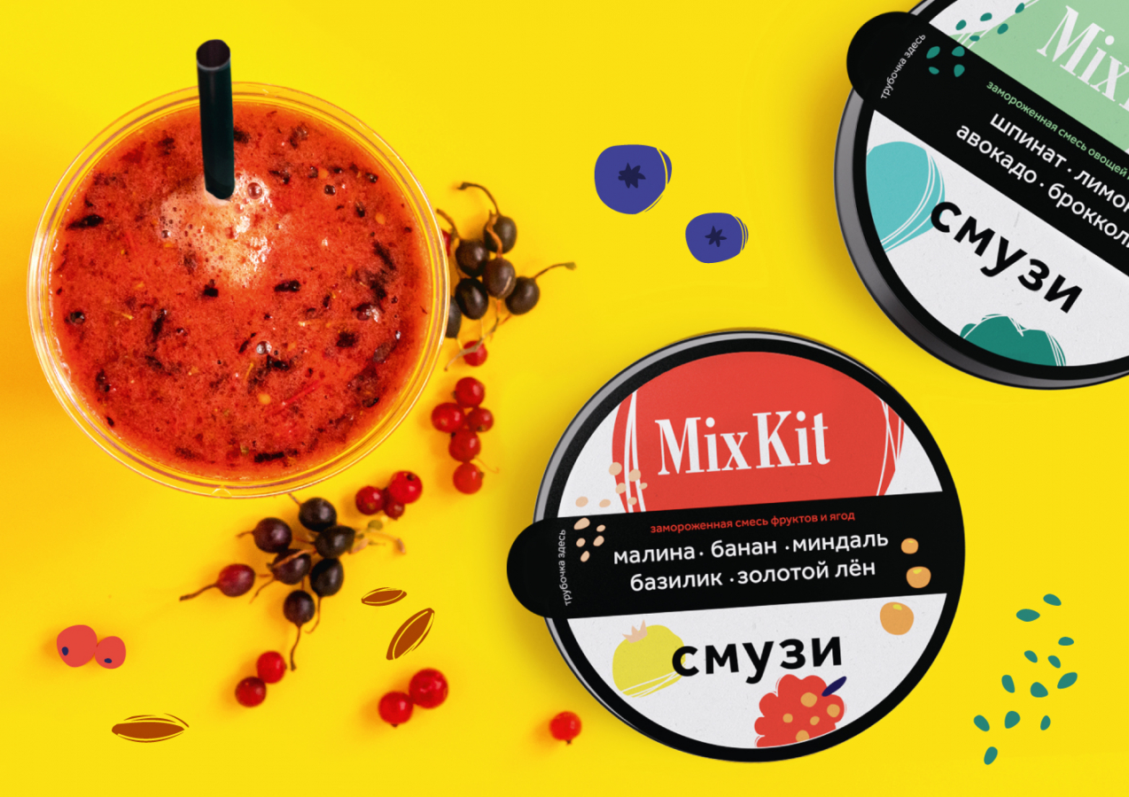 Брендинг в стиле наив-арт: DEZA создала дизайн упаковки линейки замороженных смузи Mix Kit