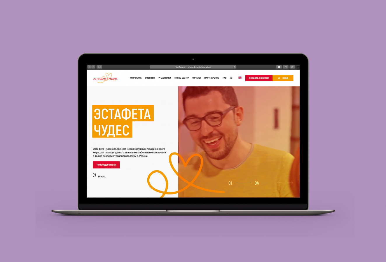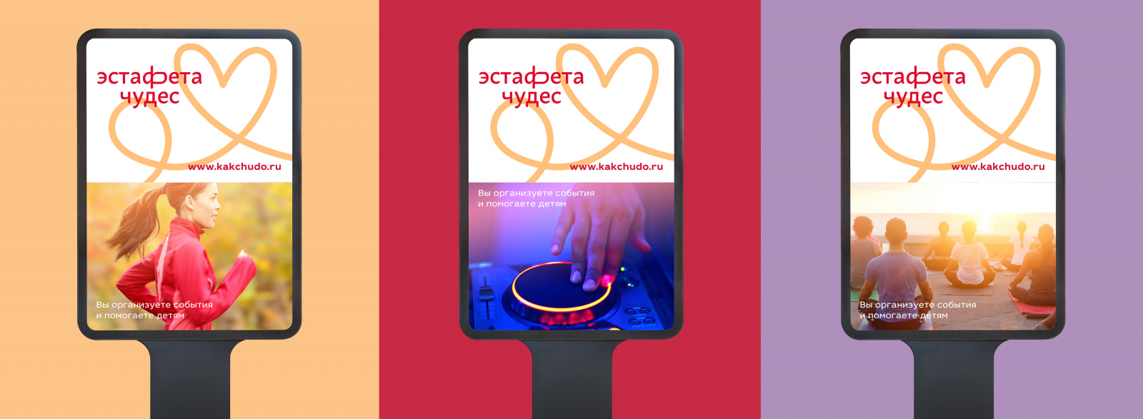 Яркая подвижная айдентика проекта объединяет неравнодушных людей в одну линию — эстафету, где победителями становятся дети-подопечные фонда.