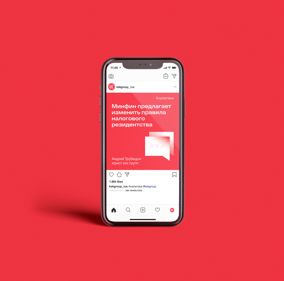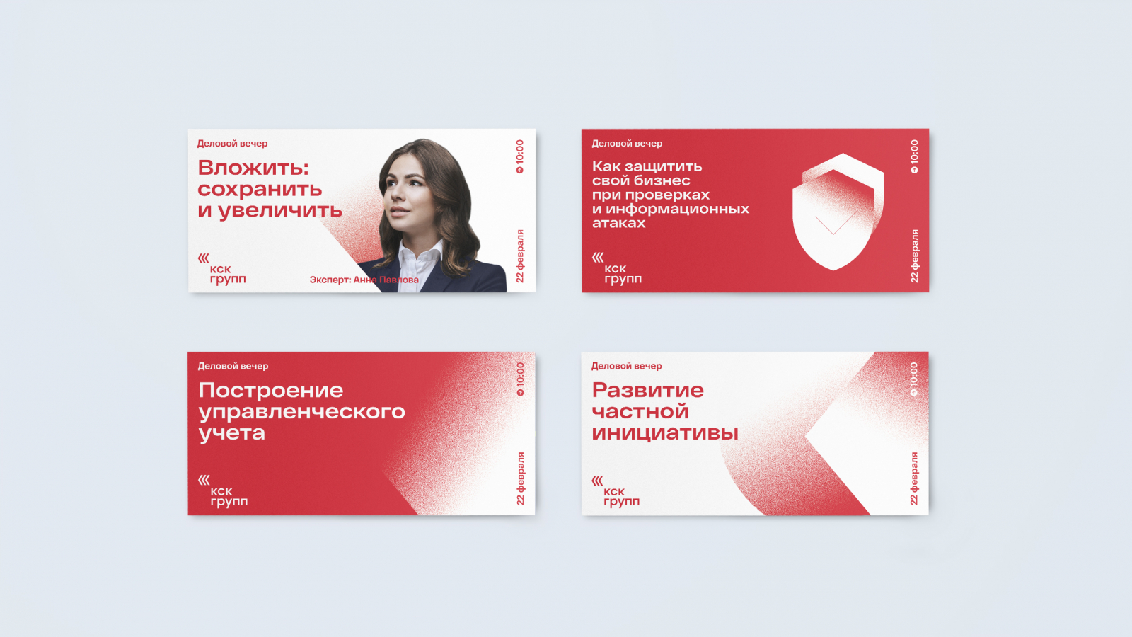 В основу новой графики легли масштаб и геометрия современной архитектуры — бизнес-центров и небоскрёбов как символов успеха, роста и развития. Эту метафору креаторы передали через сильно масштабированное, упрощенное до простых форм название компании КСК, к которому добавлен фирменный приём с «шумом» — яркий тренд из digital-среды.