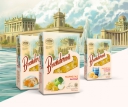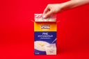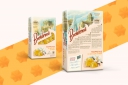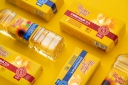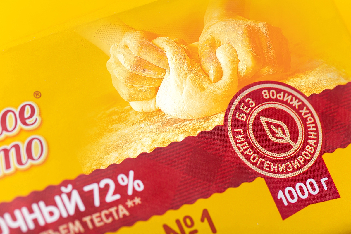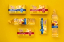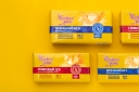 Были переосмыслены стилеобразующие константы — фирменный желтый фон, логотип на синей плашке. Цвета стали чище и свежее, усилился контраст. Это добавило упаковке необходимую сигнальность. А диагональное положение логотипа придало динамики и позволило укрупнить название, сделать его более заметным.