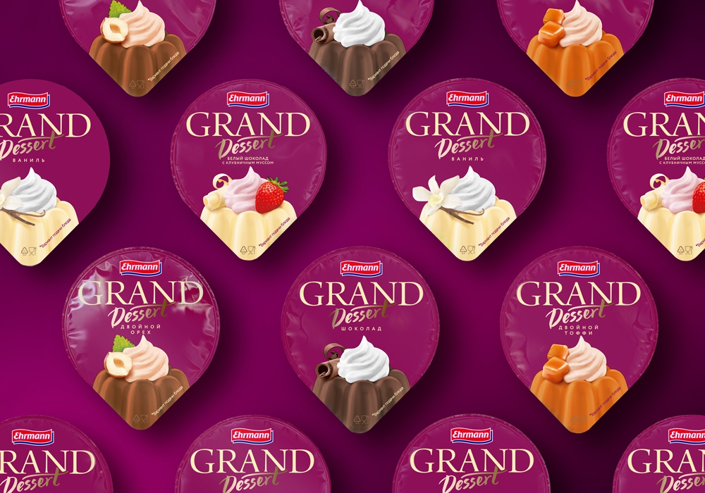 Компания Ehrmann приняла решение о редизайне линейки молочных десертов Grand Dessert. Образ бренда давно перестал попадать в визуальный мир современных любительниц десертов: чересчур строгий и лаконичный шрифт, неестественная фуд-зона, не вызывающая аппетита и не передающая ключевые ассоциации с наслаждением и чувственными удовольствиями, не соблазняли и склоняли к покупке.