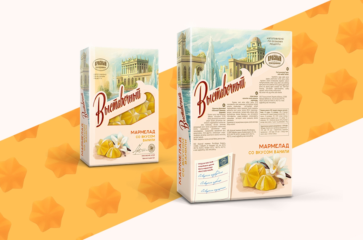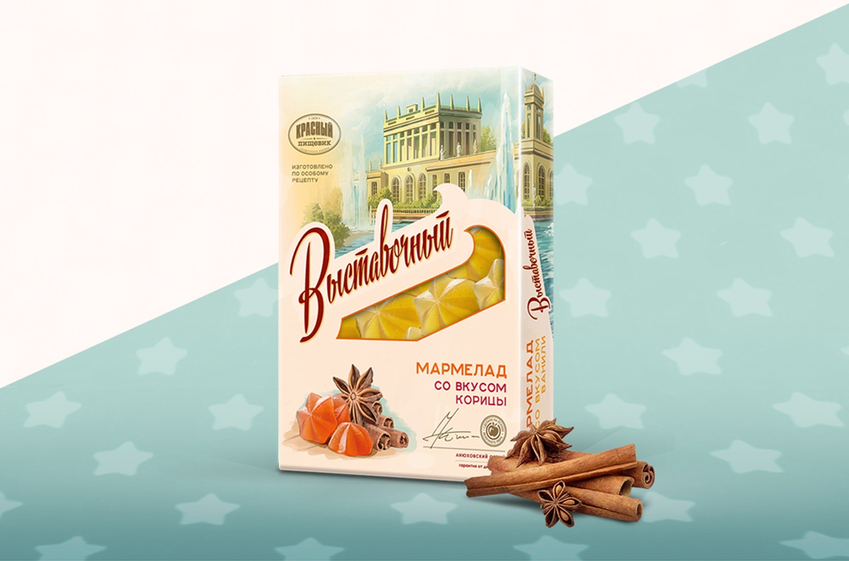 Компания «Красный пищевик» обратилась в агентство за разработкой дизайна для бренда мармелада «Выставочный» с сохранением эстетики существующей упаковки.
