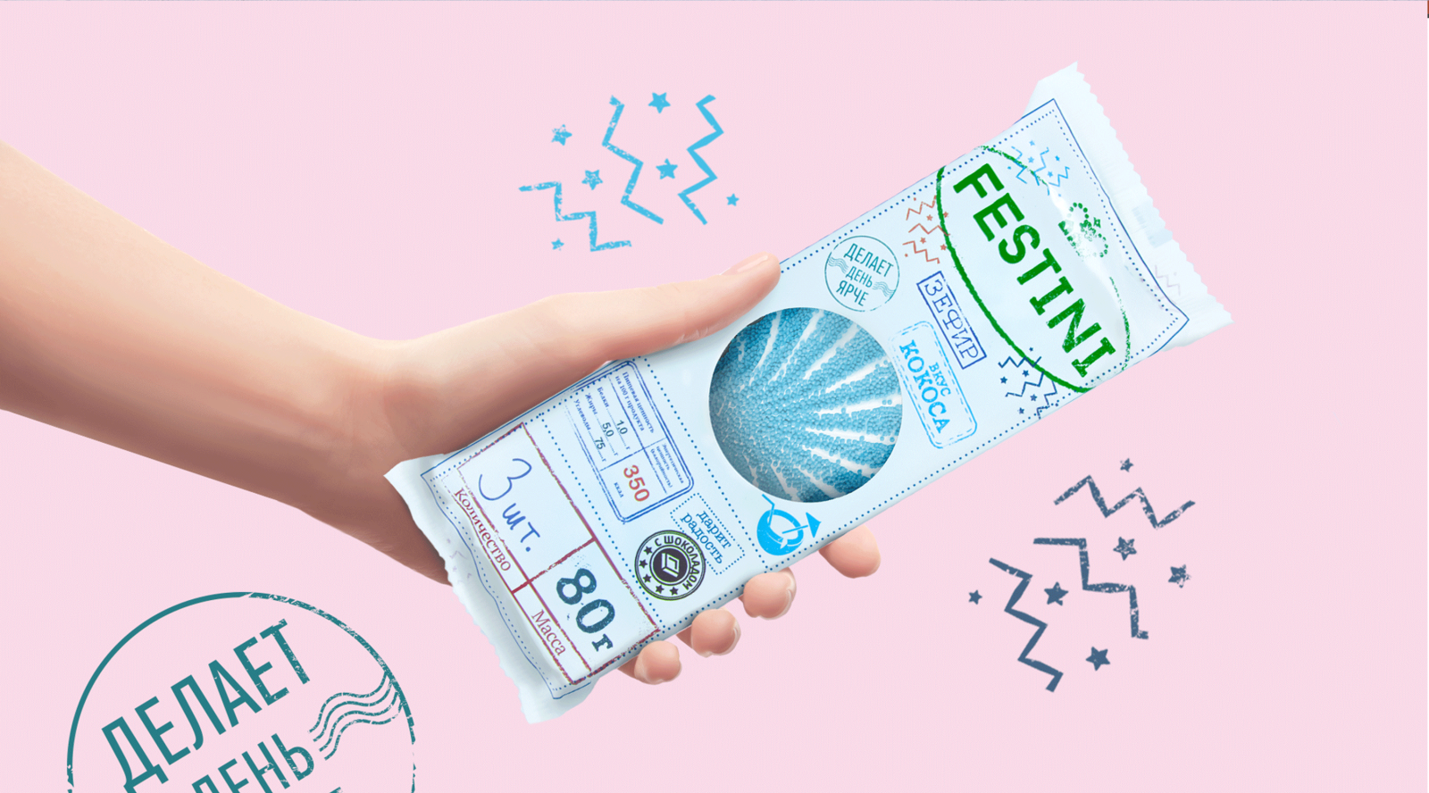 Перед командой проекта стояла задача разработать дизайн упаковки для новой ТМ необычного зефира «Festini».
