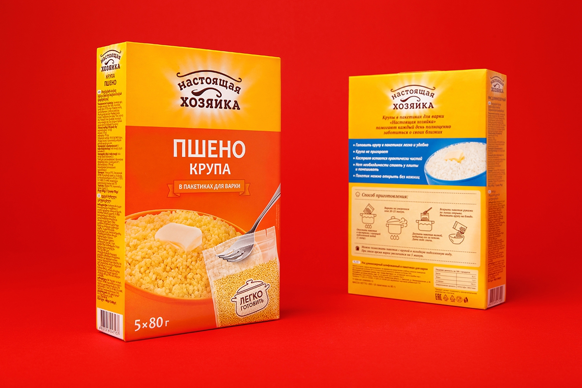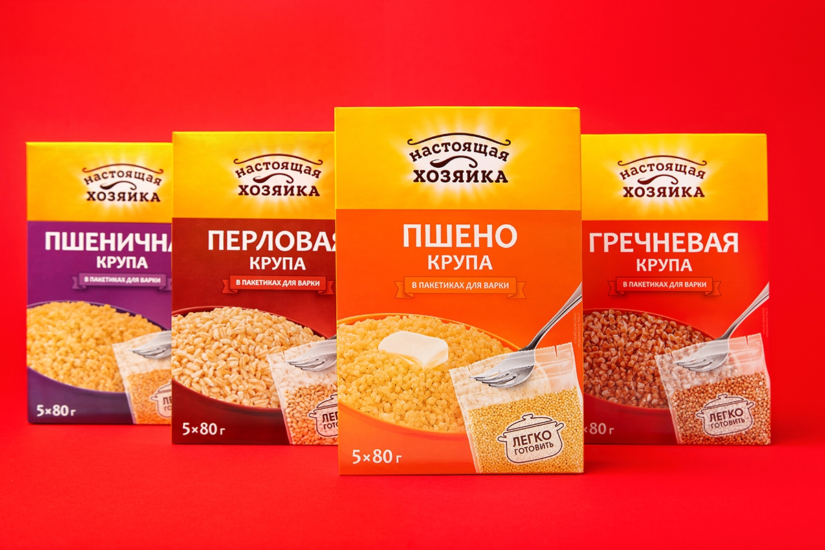 Fabula Branding разработала дизайн для круп ТМ «Настоящая хозяйка» российской компании «Ресурс». В эконом-сегменте появилась новая яркая и аккуратная линейка, уверенно выглядящая на полке.