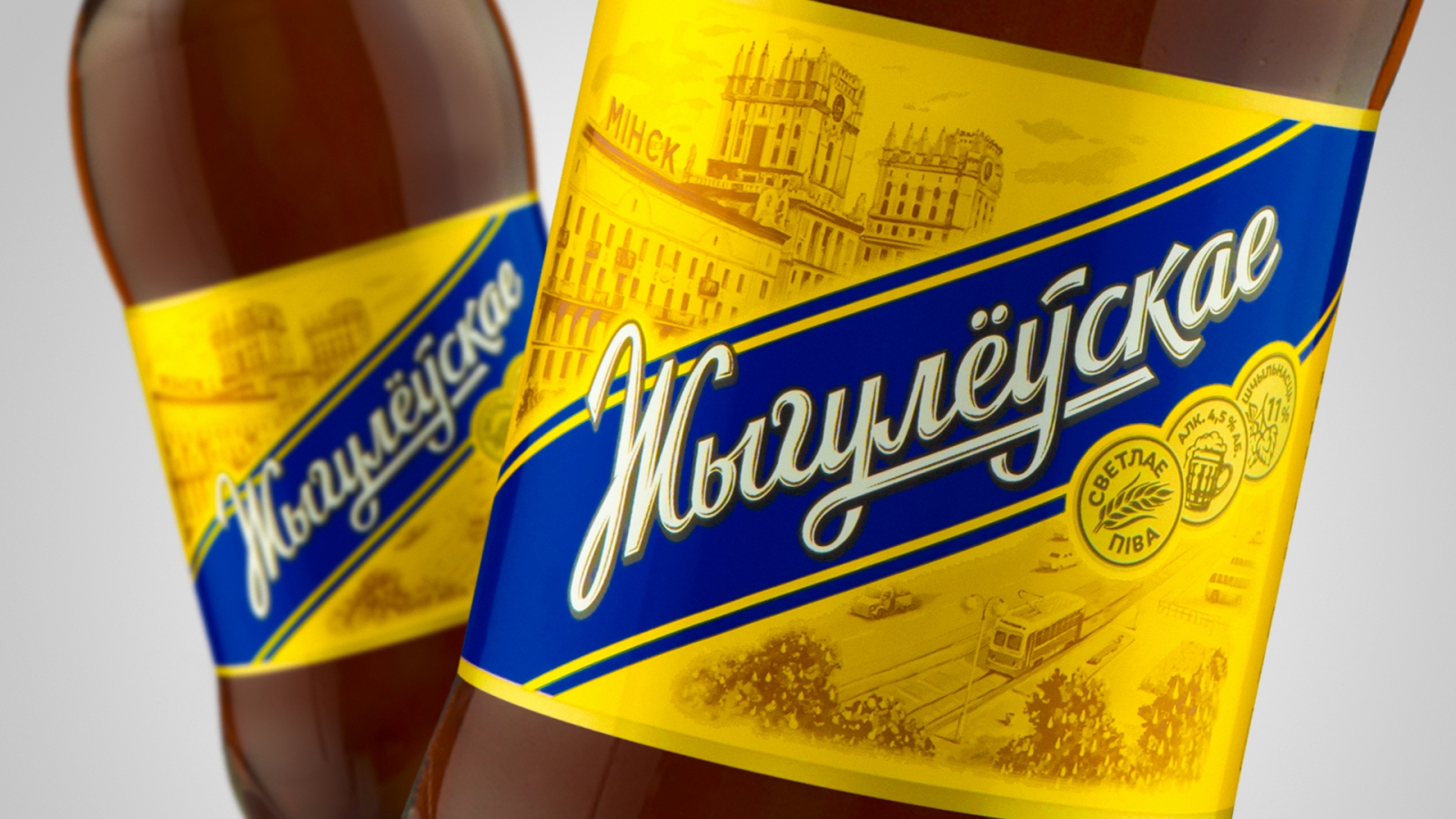 Геральдические элементы, не совсем соответствующие духу времени, заменили на гравюру с изображением Минска 70-х годов. Вместе с витражным шрифтом она поддерживает нужное ностальгическое настроение. Отсылка к Минску и перевод этикетки на белорусский язык акцентируют внимание на белорусском происхождении продукта, которое для многих потребителей является признаком качества.