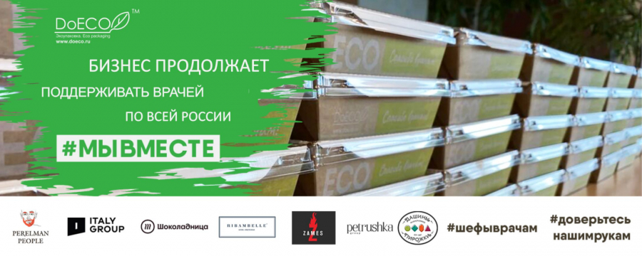 От Москвы до Владивостока все крупные сетевые рестораны и кафе уже начали доставлять горячие обеды в благотворительной упаковке DoECO. На сегодняшний день поддержку от производителя получили такие проекты, как #доверьтесьнашимрукам г. Санкт — Петербург, #ШефыВрачам г. Владивосток, сети ресторанов Perelman People, Italy Group, Ribambelle, сети кофеен Шоколадница, Петрушка, «Дашины пирожки» и др.